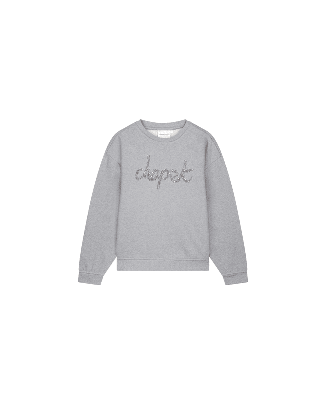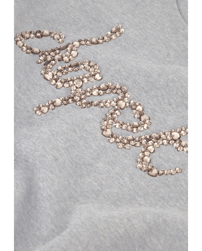 Een sweater met een vleugje glamour. De Terry rhinestone sweater in donkergrijs melange combineert een comfortabele pasvorm met fonkelende details die je outfit net dat beetje extra geven.