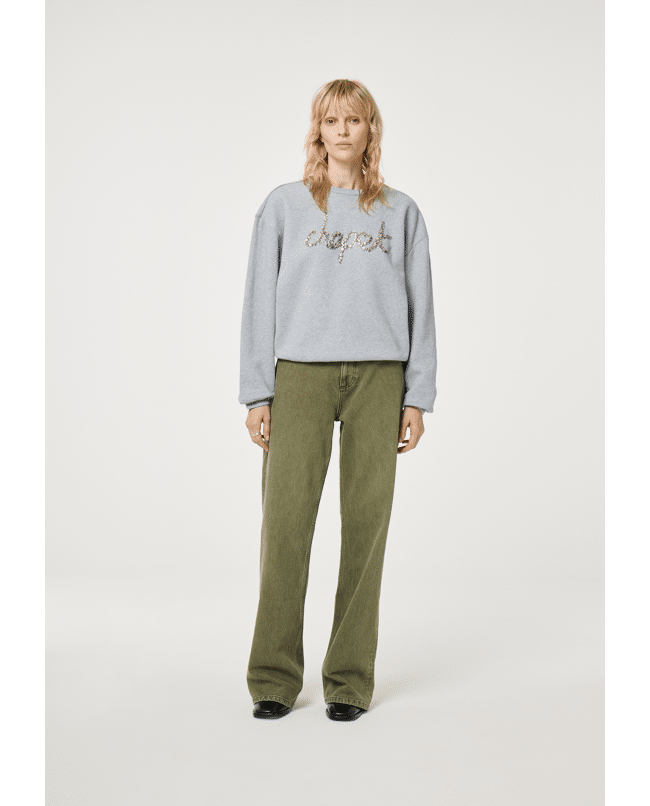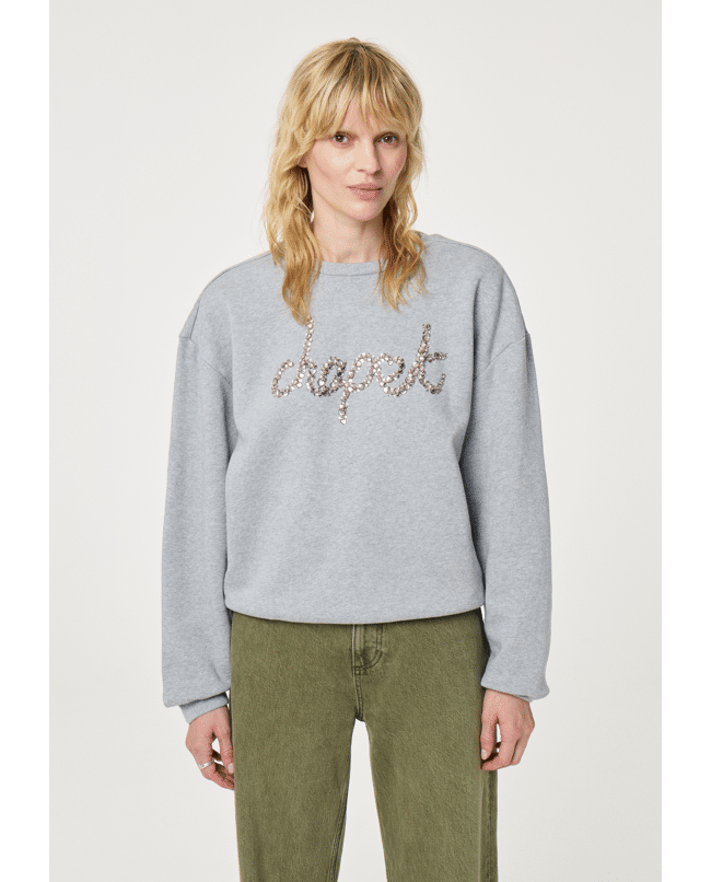 Terry – Sweater van Fabienne Chapot met tekst ‘chapot’ in siersteentjes