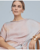 60% cupro, 40% viscose. Licht en ademend met een zachte, luxe touch en een mooie valling.