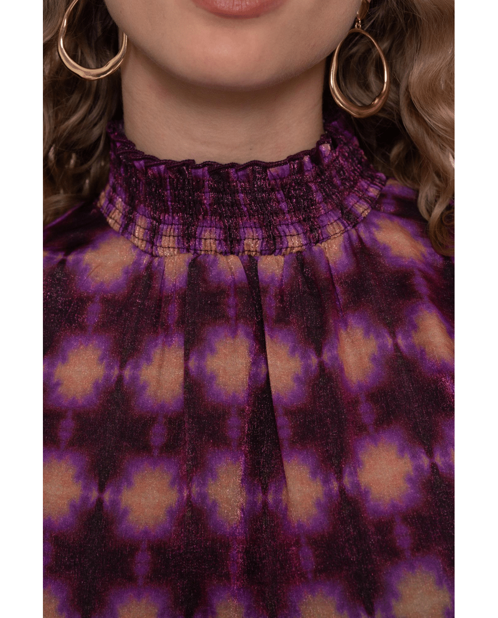 Deze top geeft je outfit direct kleur en karakter. De hoge hals en gesmokte boorden zorgen voor een elegante en moderne uitstraling.