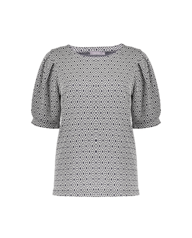De grafische structuur en volumineuze mouwen geven deze top een moderne, vrouwelijke uitstraling zonder teveel poespas.