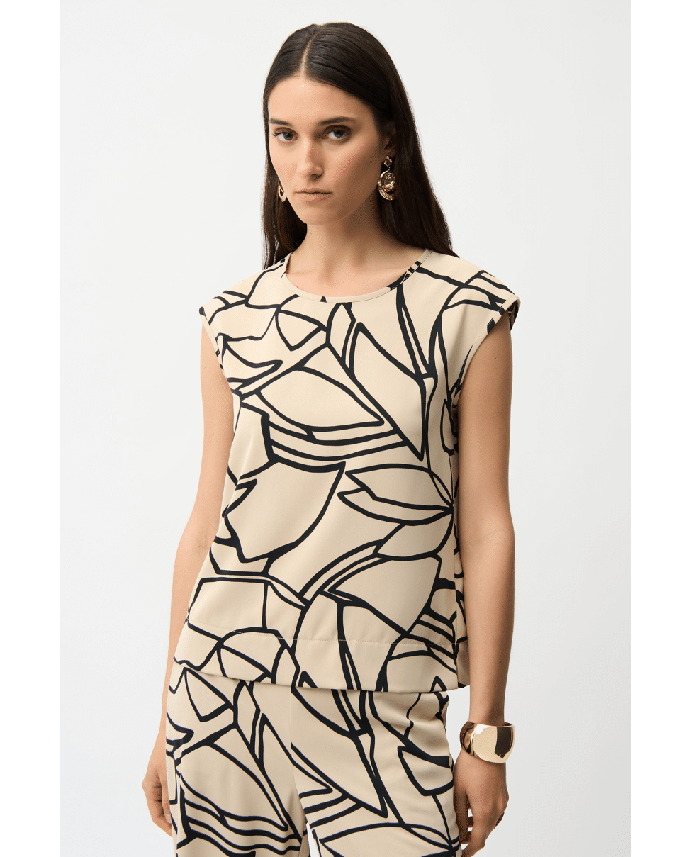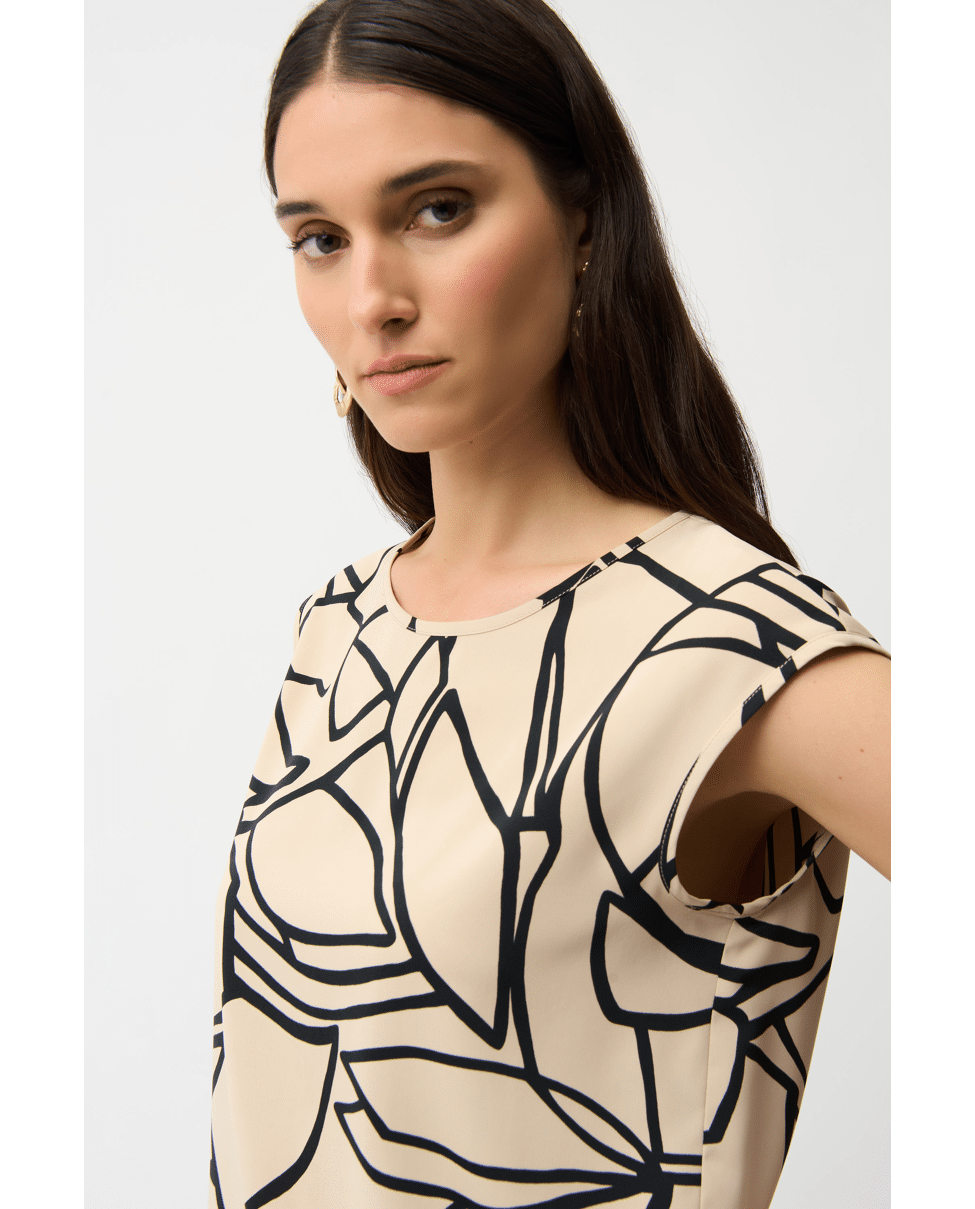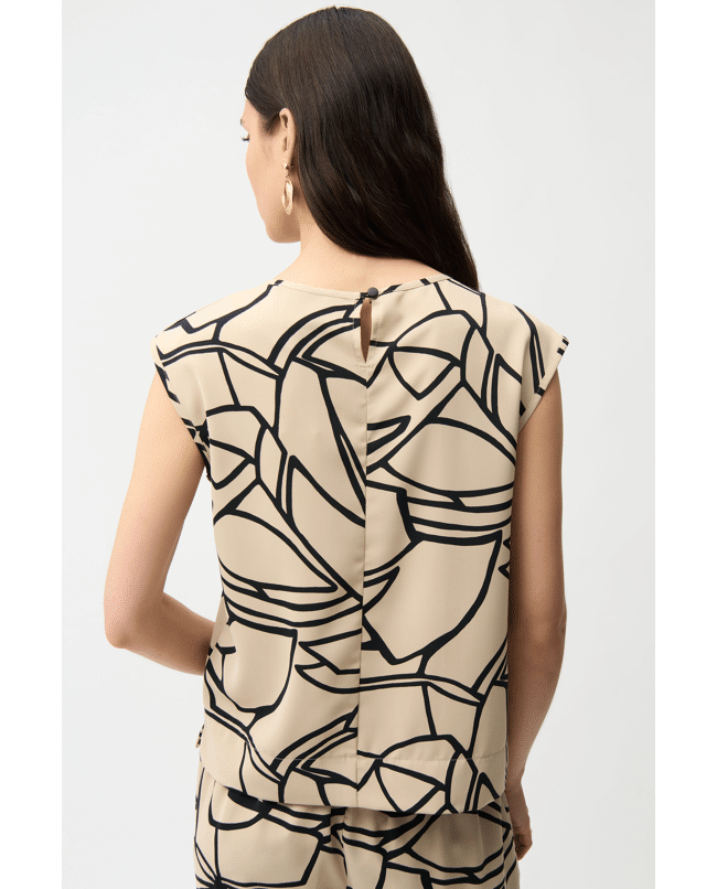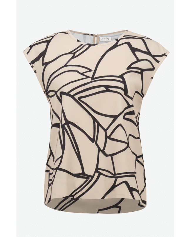 Het abstracte printje geeft deze basic net wat meer karakter – perfect onder een blazer of solo op een zomerse dag.