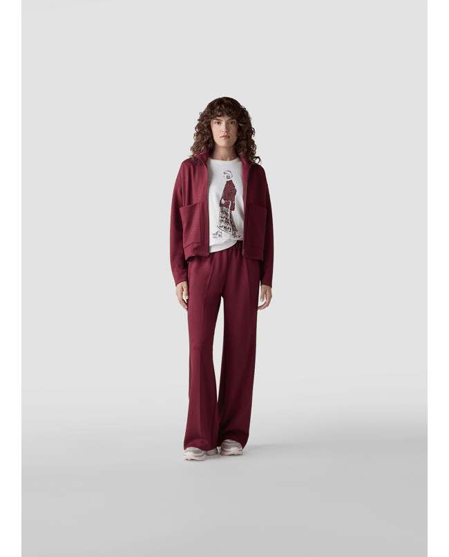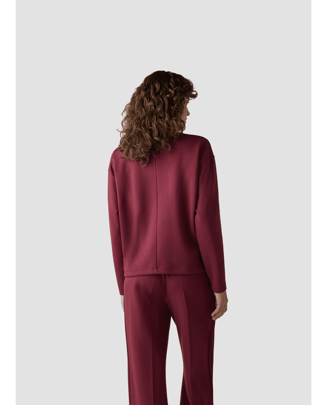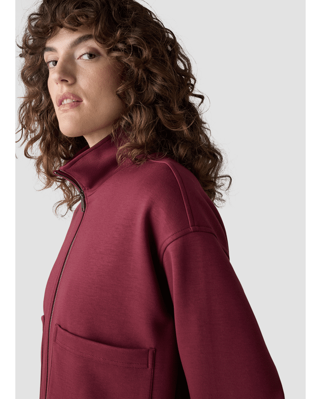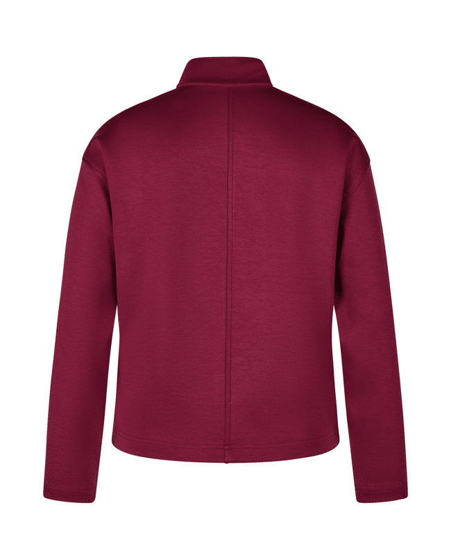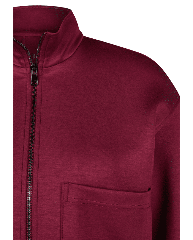 De diepe bordeauxkleur en rechte fit maken deze jas net even anders. De grote opgestikte zakken geven een nonchalante twist.