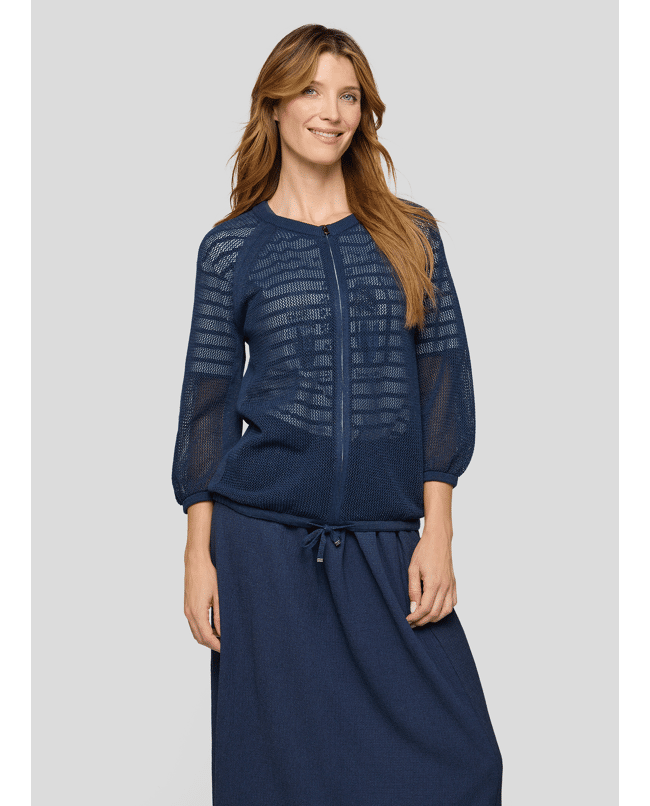 Transparant damesvest van Rabe met ritssluiting, ronde halslijn en 3/4 mouwen