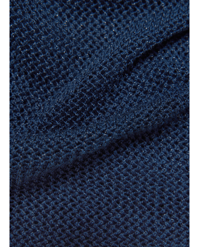 48% katoen, 48% acryl, 4% metaal – voelt zacht aan en ademt goed, met een lichte glans.