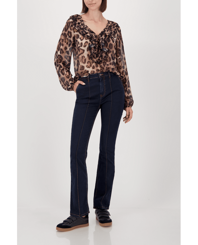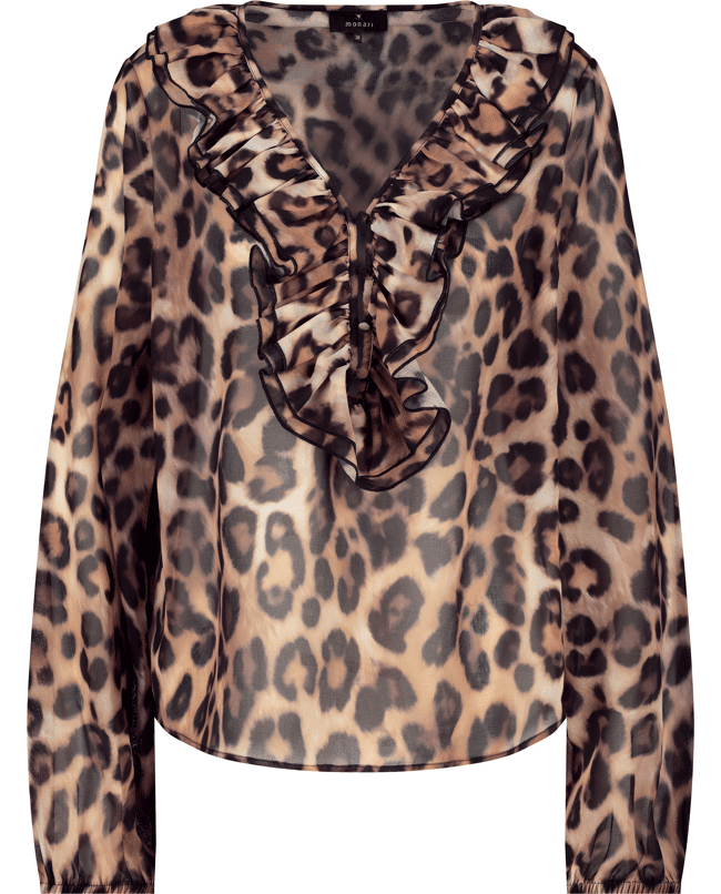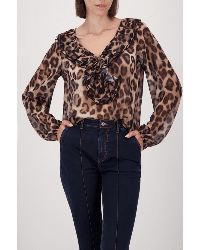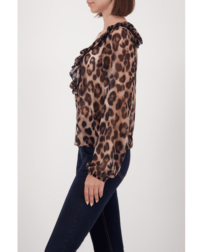 Deze blouse met luipaardprint en opvallende ruches is een statement piece pur sang. Vrouwelijk, speels en ideaal voor bijzondere gelegenheden.