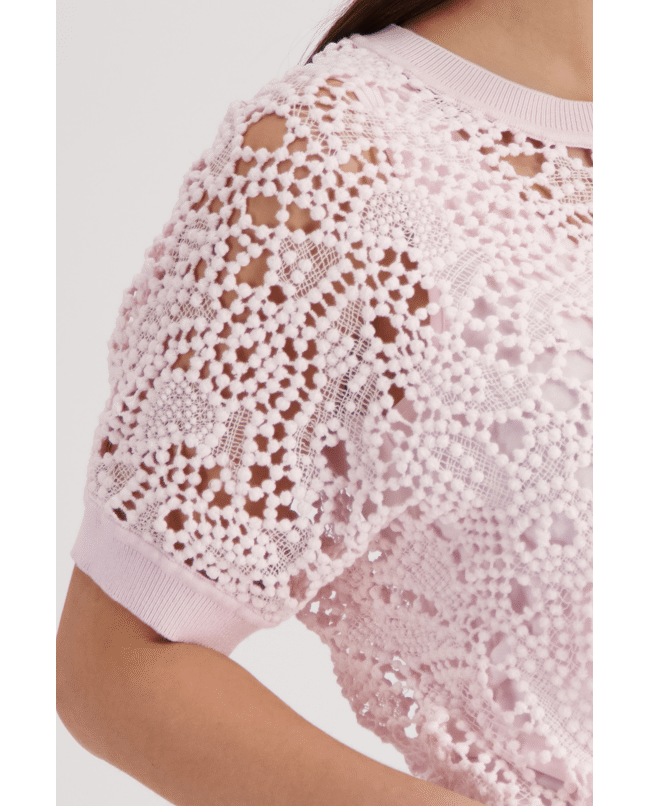 Deze trui met kantpatroon geeft je outfit een zachte, vrouwelijke uitstraling. Ideaal voor frisse lentedagen of een verzorgde casual look.