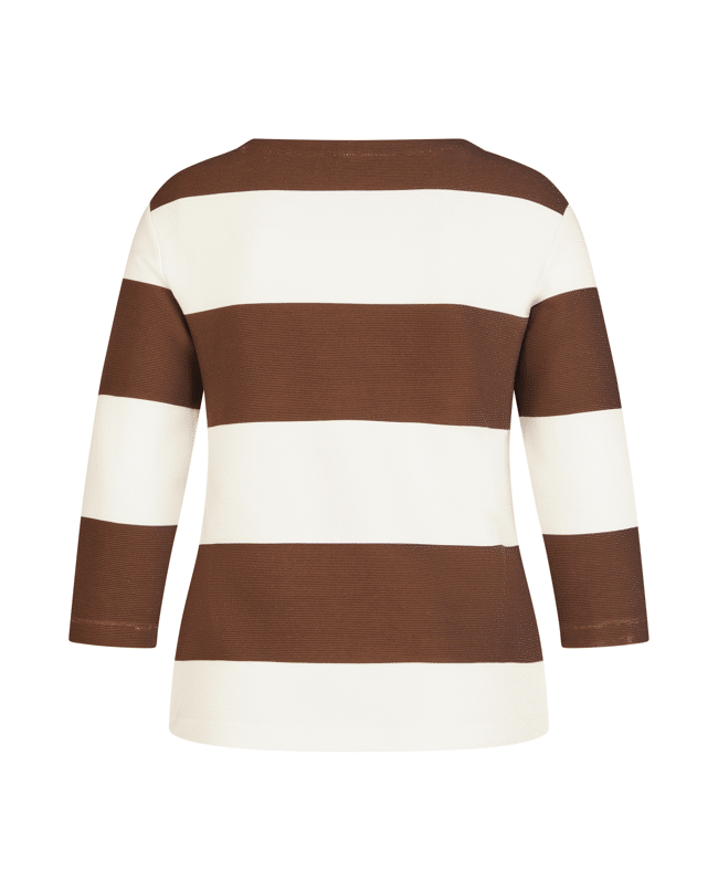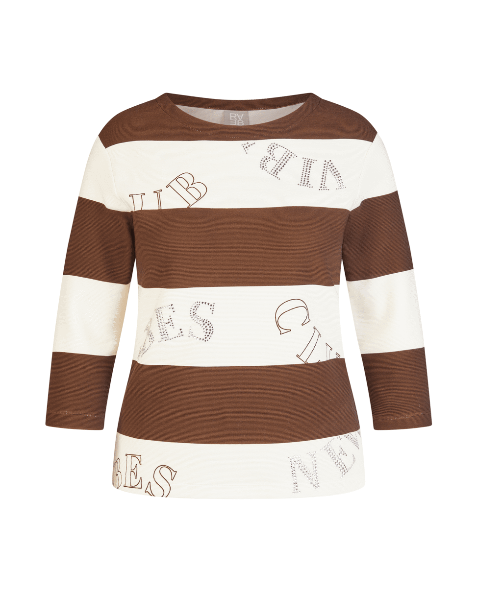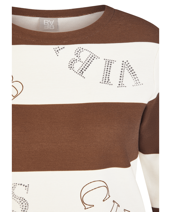 Damestrui van Rabe met een mix van tekst en strepen met siersteentjes, ronde halslijn en 3/4 mouwen