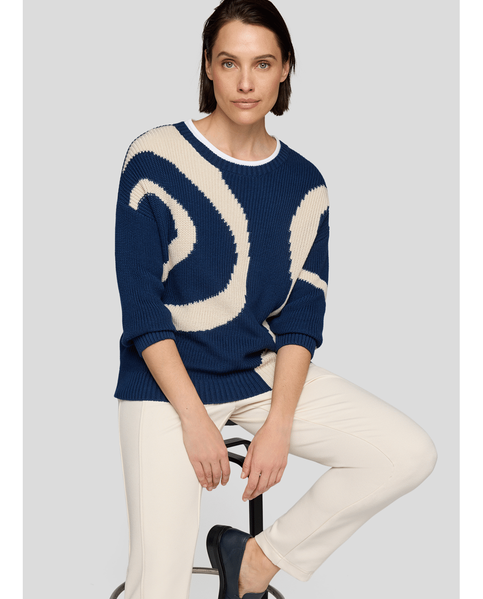 Gebreide trui met opvallend grafisch dessin. Perfect voor het herfst- en winterseizoen en ideaal voor vrouwen die een moderne twist aan hun knitwear willen geven.