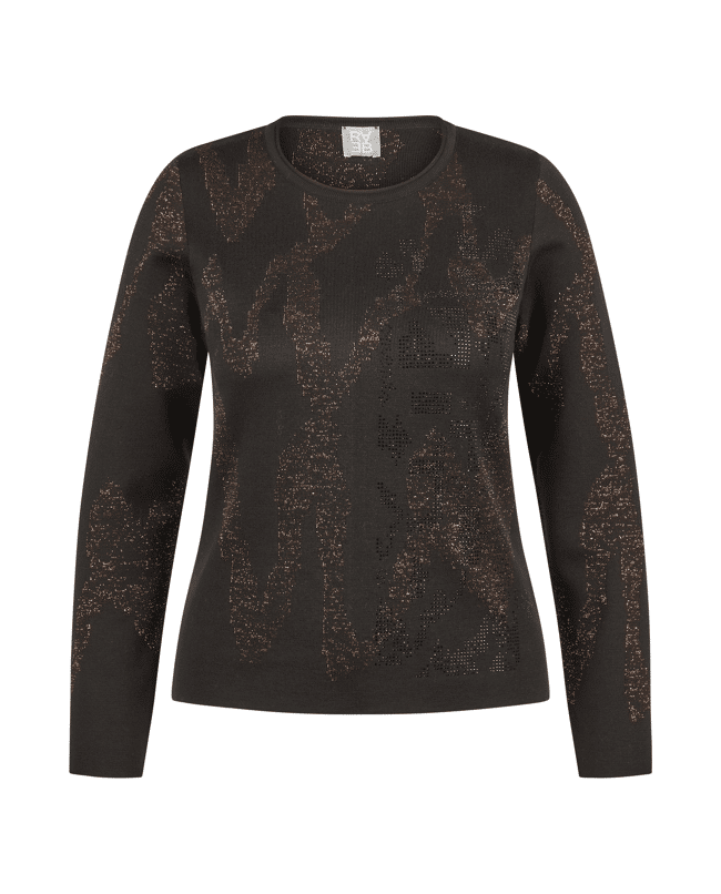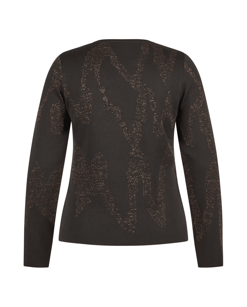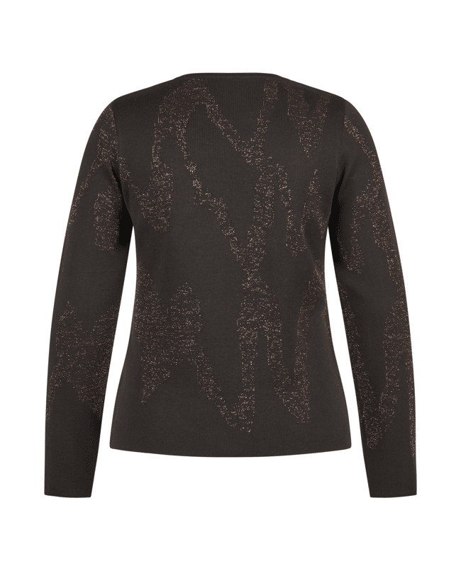 Deze trui heeft een speels ingeweven dessin met metallic garen voor een subtiel glanseffect. Perfect voor wie houdt van comfort met een twist.