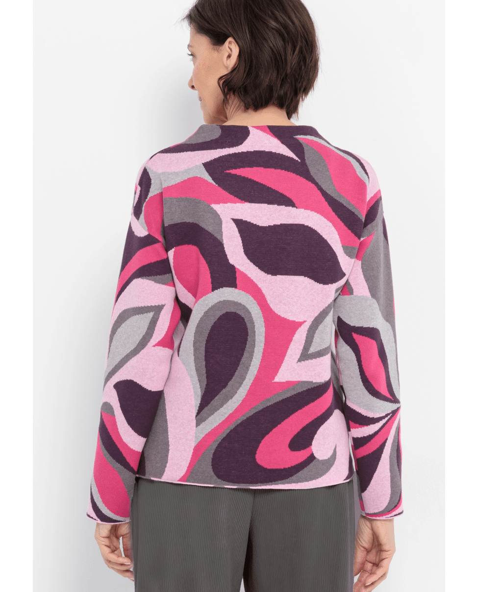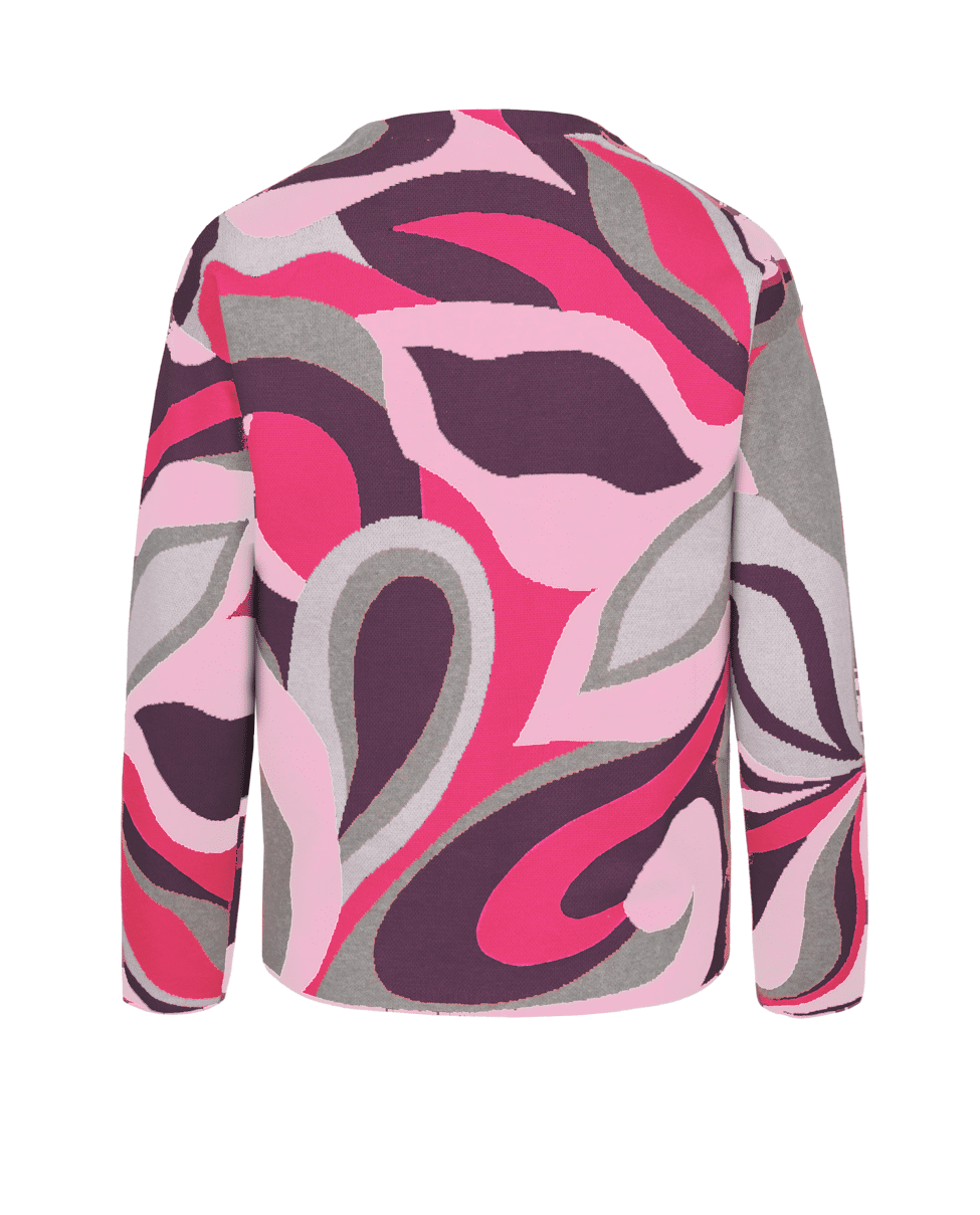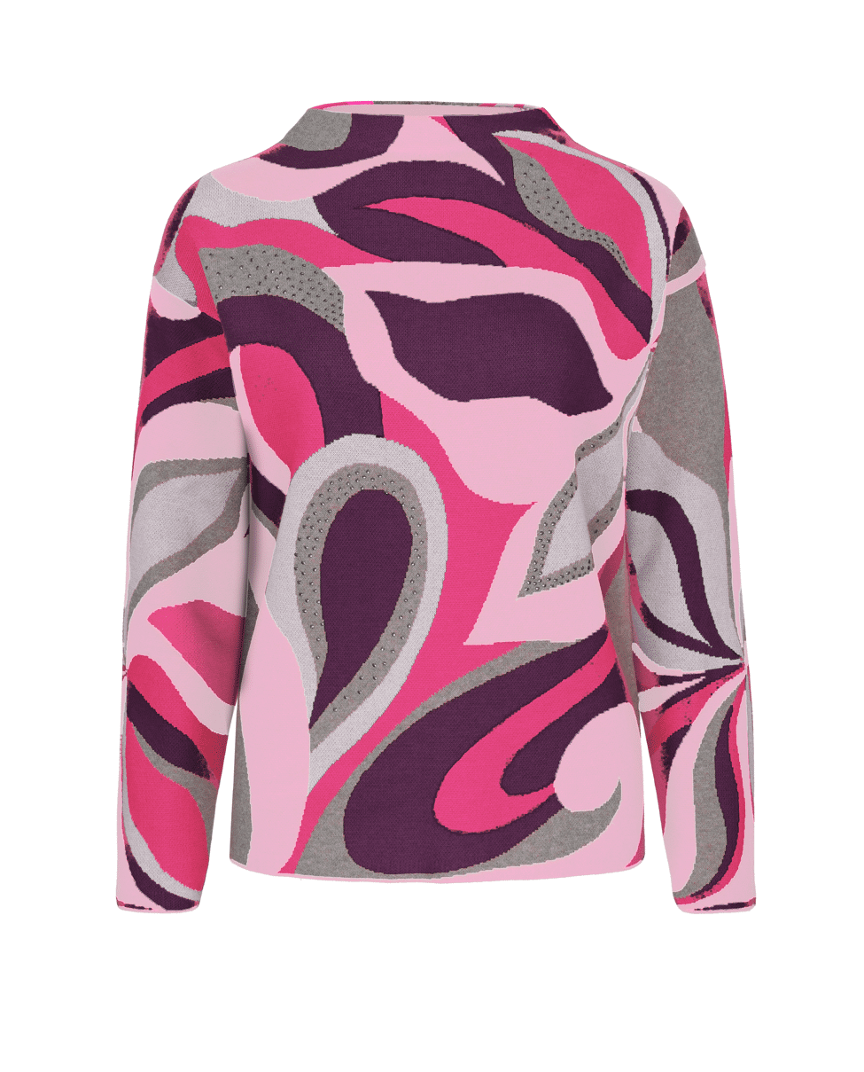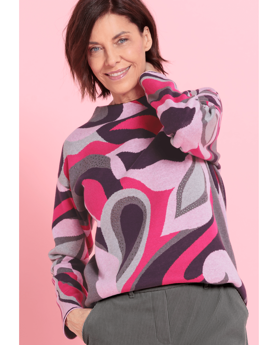 Deze trui met retro swirlprint is een statement piece voor het najaar. Perfect als je houdt van kleur en karakter in je outfit.