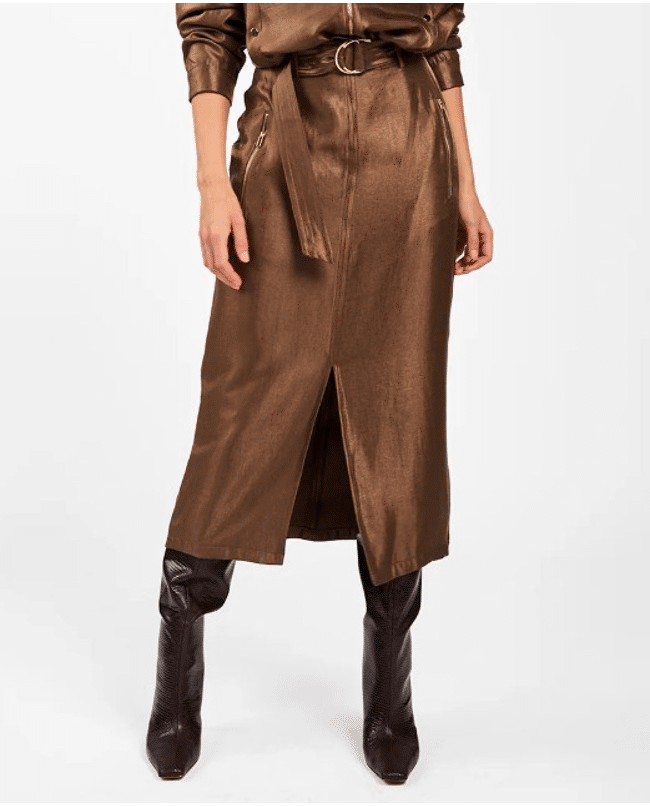 Varyas – Midi-rok van Aaiko met bijpassende ceintuur, ritszakken en split aan de voorzijde