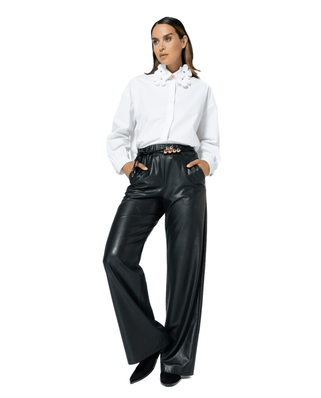 Vegan leren broek van Caroline Biss met sierlijke riem