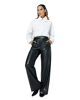 De glanzende leerlook en bijgeleverde fantasie riem maken deze broek moeiteloos chic – of je ‘m nu casual of dressed-up draagt.