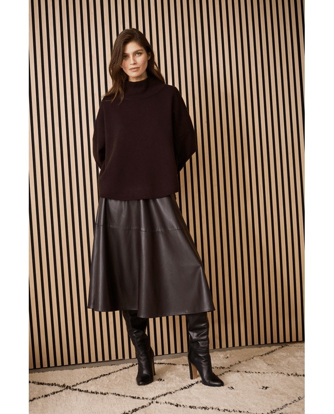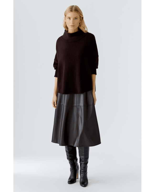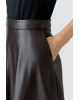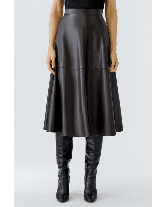 Deze imitatie leren rok van Oui in dark brown combineert een stoere uitstraling met vrouwelijke elegantie. De A-lijn met plooien en steekzakken maakt haar stijlvol én praktisch.