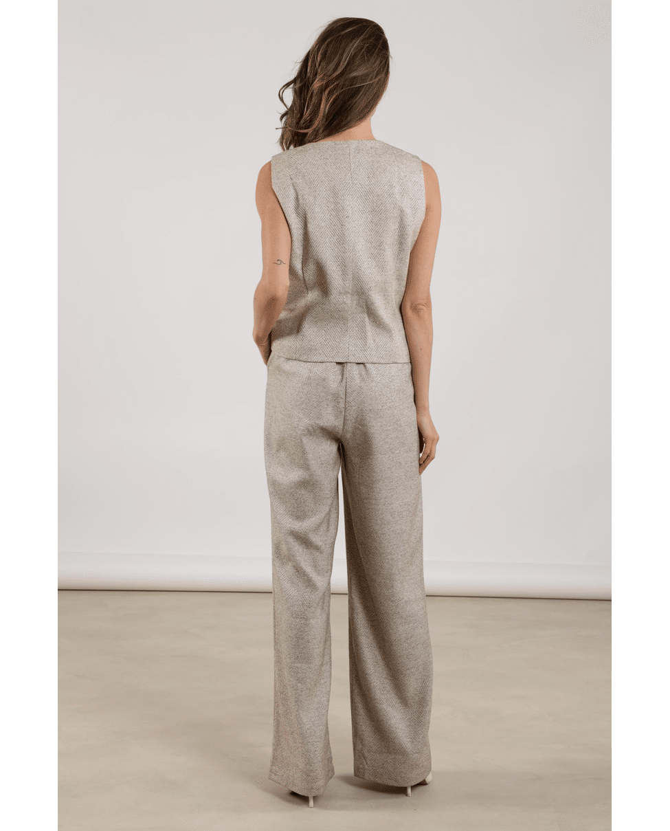 Vera Pants Strass – Damesbroek van Nukus met visgraatmotief, strassteentjes, wijde pijpen en elastische tailleband met strikkoord
