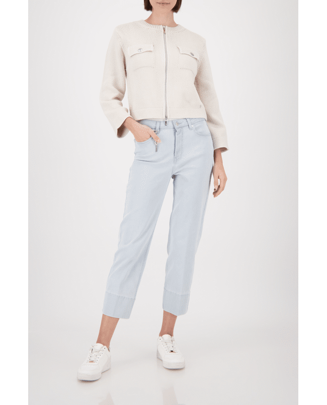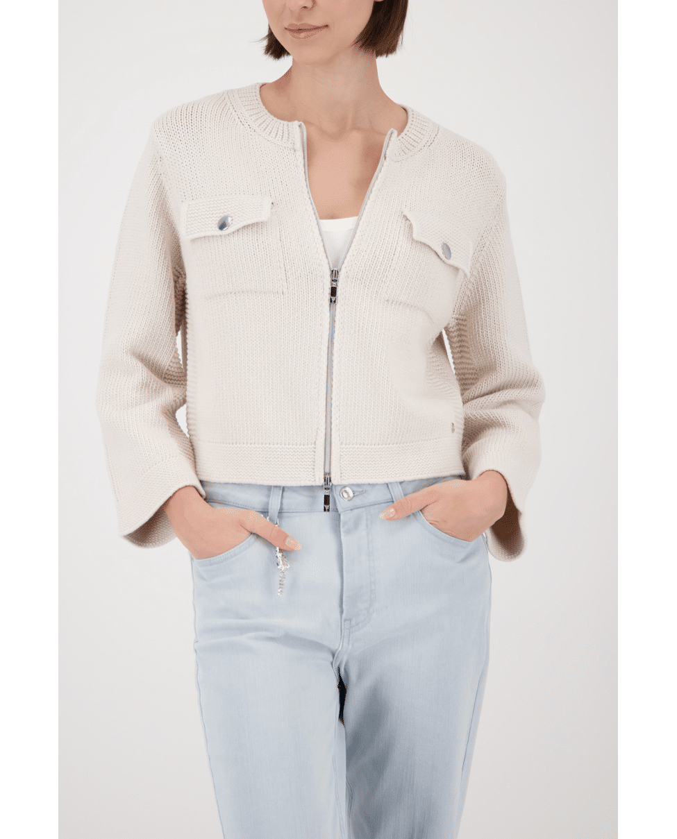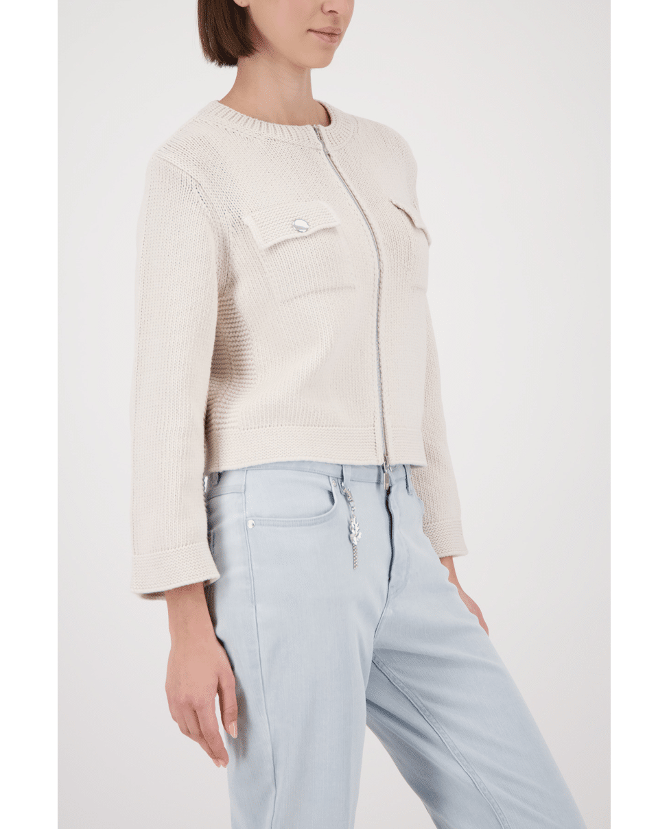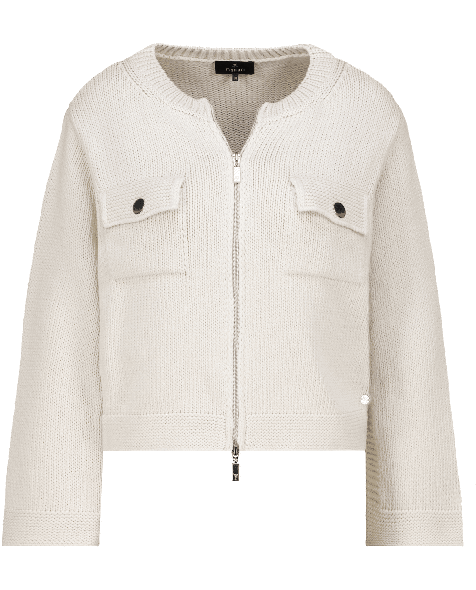 Dit vest van Monari is een fijne extra laag voor frisse dagen. De klepzakken en zilverkleurige rits geven een eigentijdse twist aan het klassieke model.