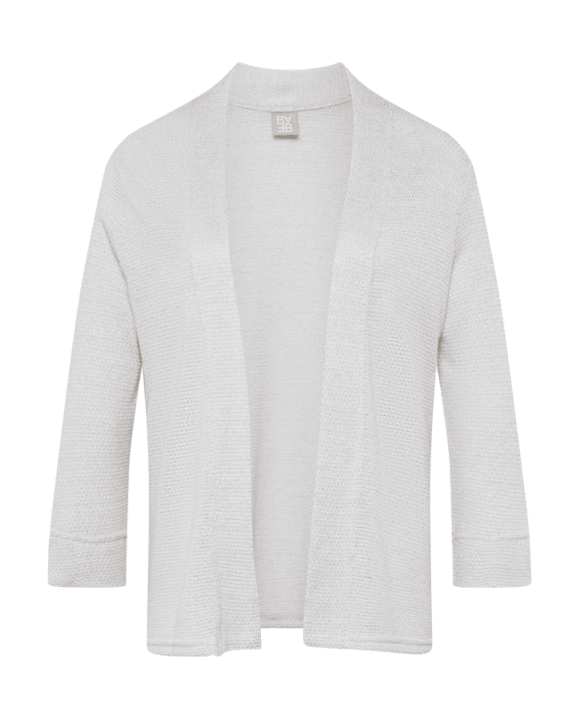 Deze openvallende cardigan is een subtiele essential voor frisse lentedagen. Minimalistisch, luchtig en makkelijk te combineren.