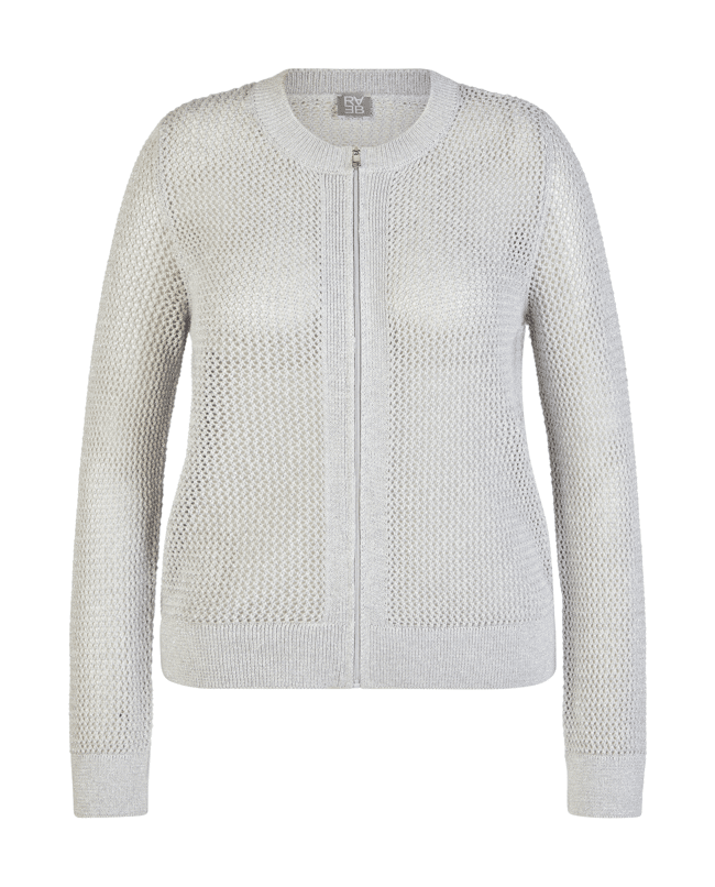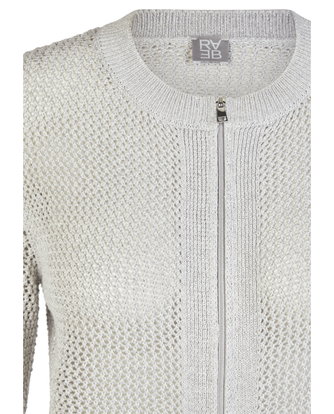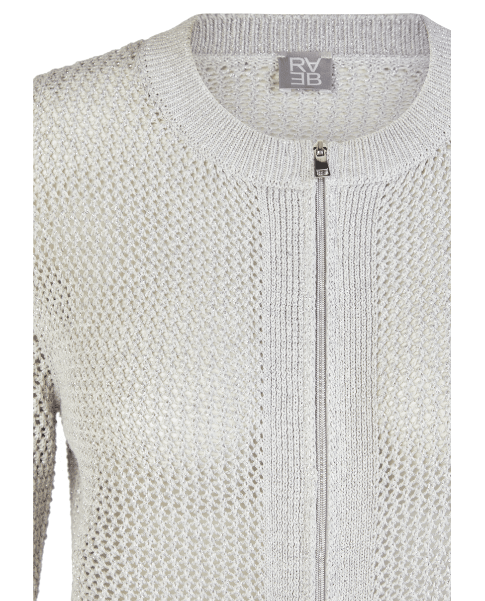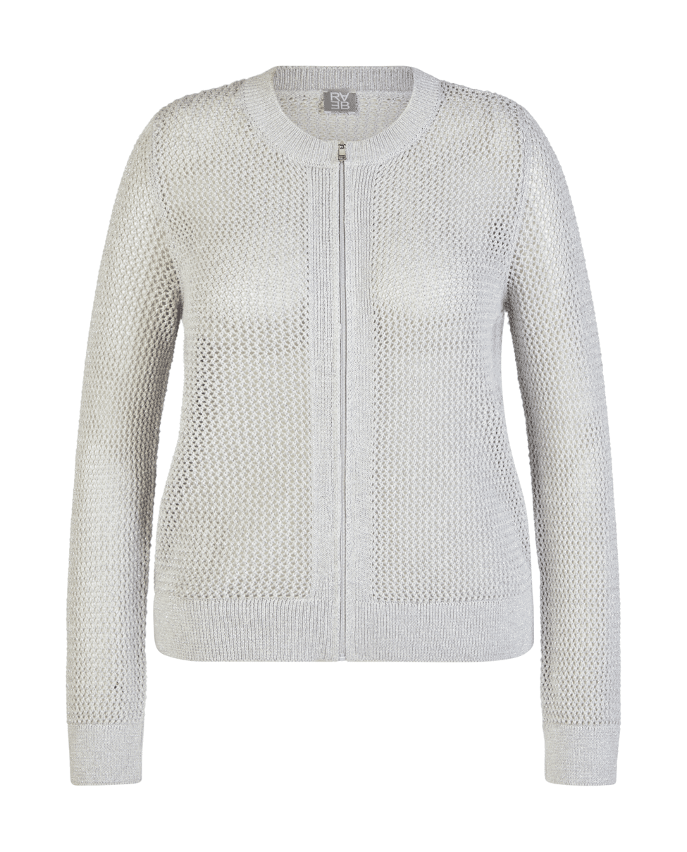 Damesvest van Rabe met subtiele glans, opengewerkte structuur, ronde halslijn en lange mouwen