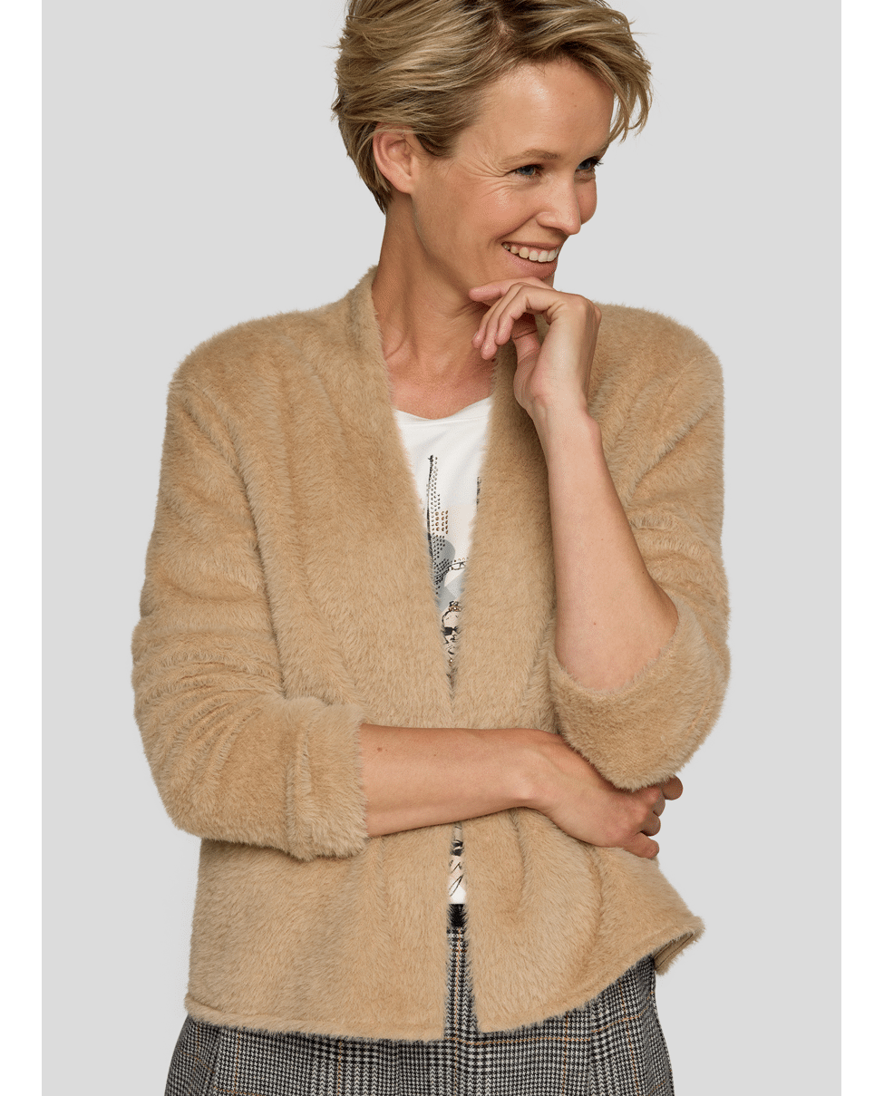 Dames vest van Rabe met zacht fluffy materiaal, V-hals en lange mouwen