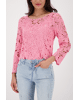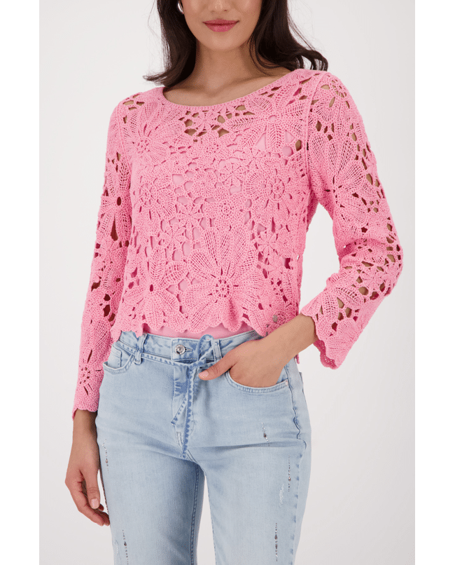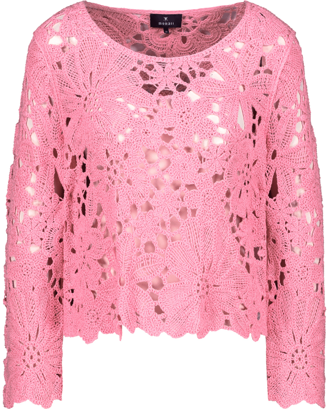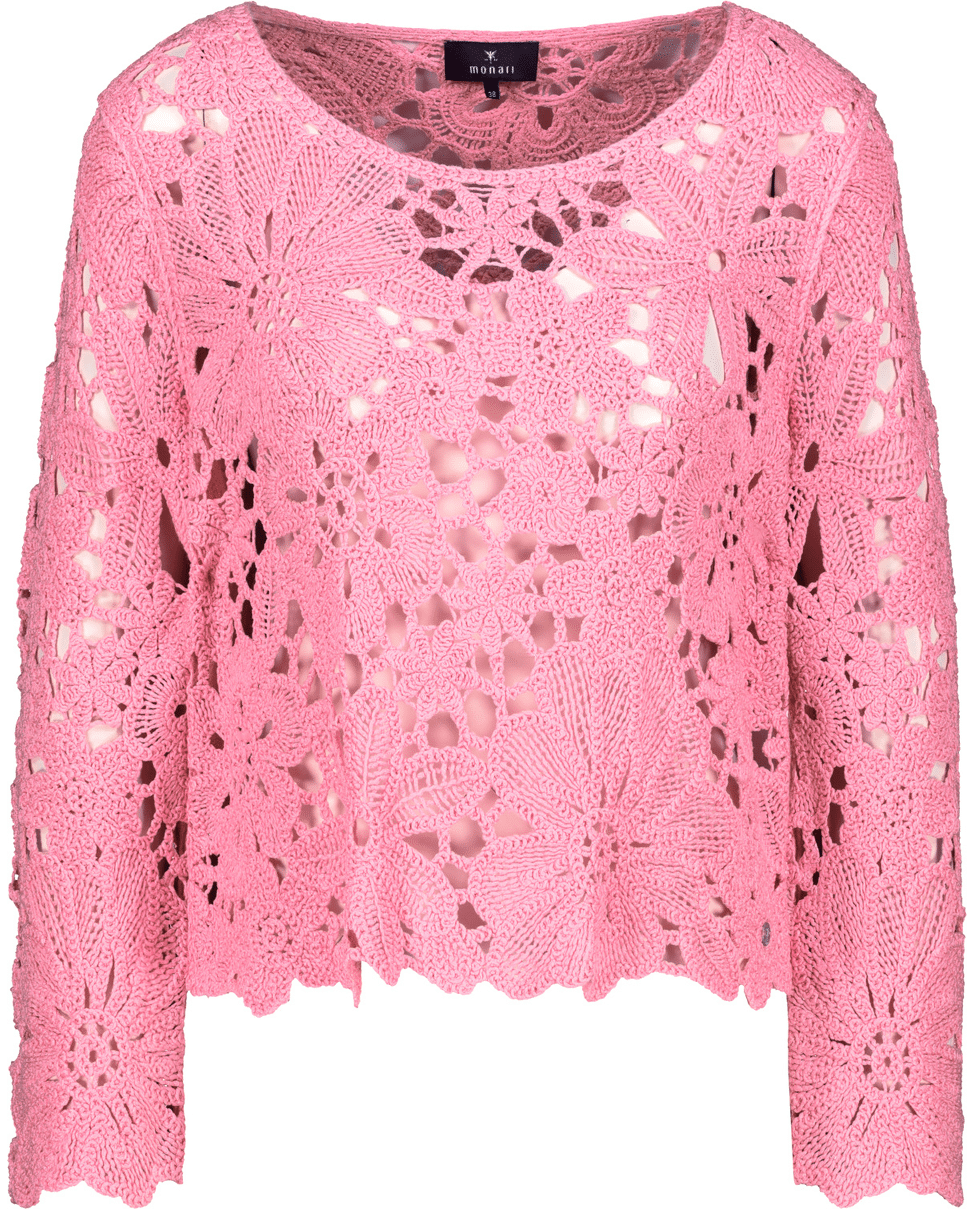 Viscose dames trui van Monari met gehaakt bloemenpatroon