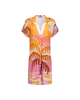 Deze roze/coral jurk met palmtree print brengt direct zomerse energie in je garderobe. De luchtige viscose en het rechte model maken haar ideaal voor warme dagen, vakantie of een etentje op een zwoele avond.