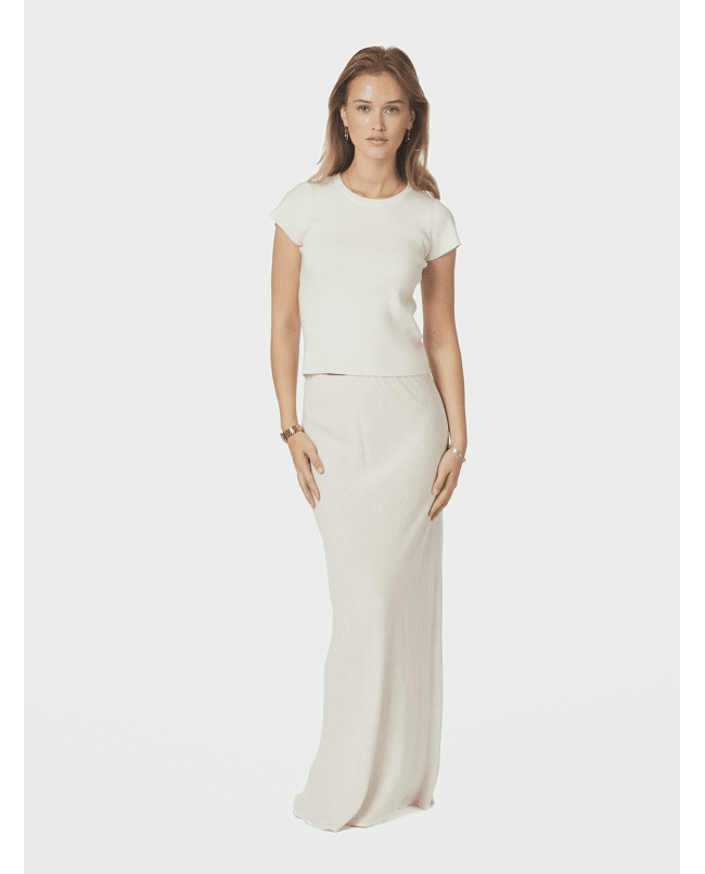 De combinatie van luchtige stof en vrouwelijke pasvorm maakt dit een rok waar je elke dag naar grijpt. Mooi met een eenvoudige top of blouse.