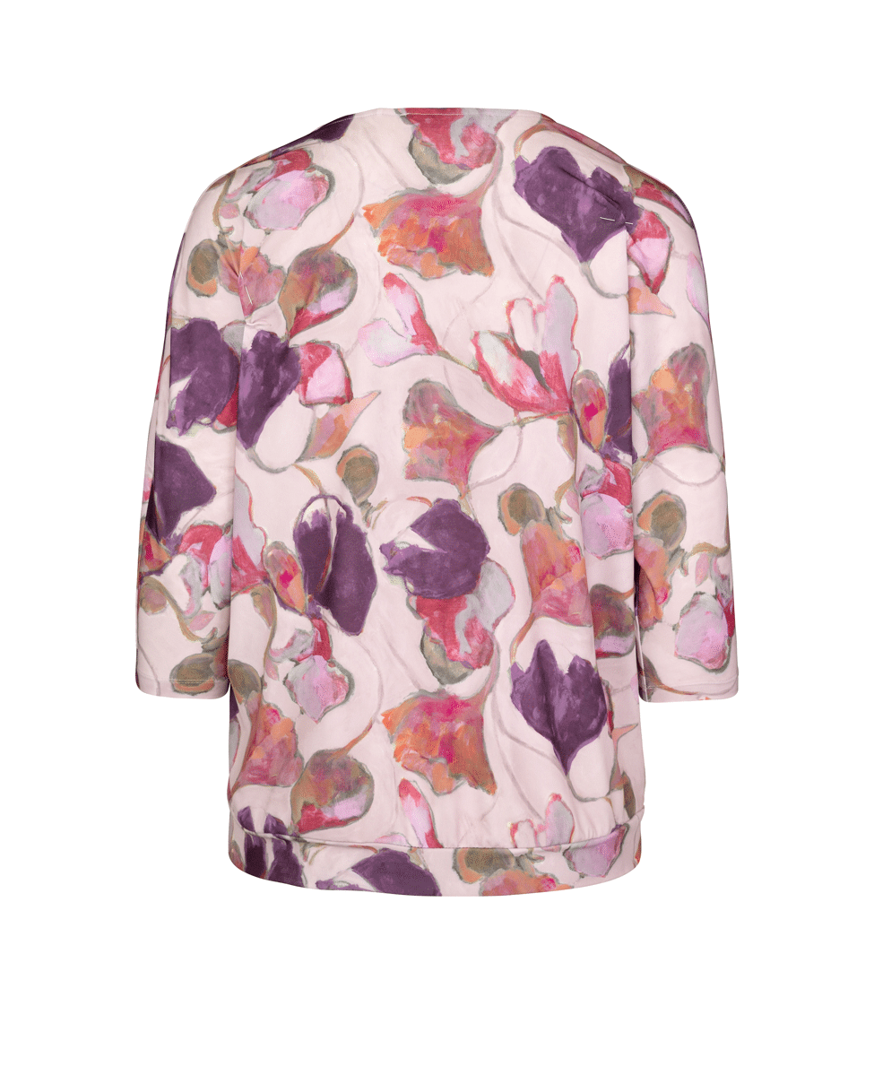 De aquarelachtige print en zachte kleuren zorgen voor een vrouwelijke, creatieve uitstraling.