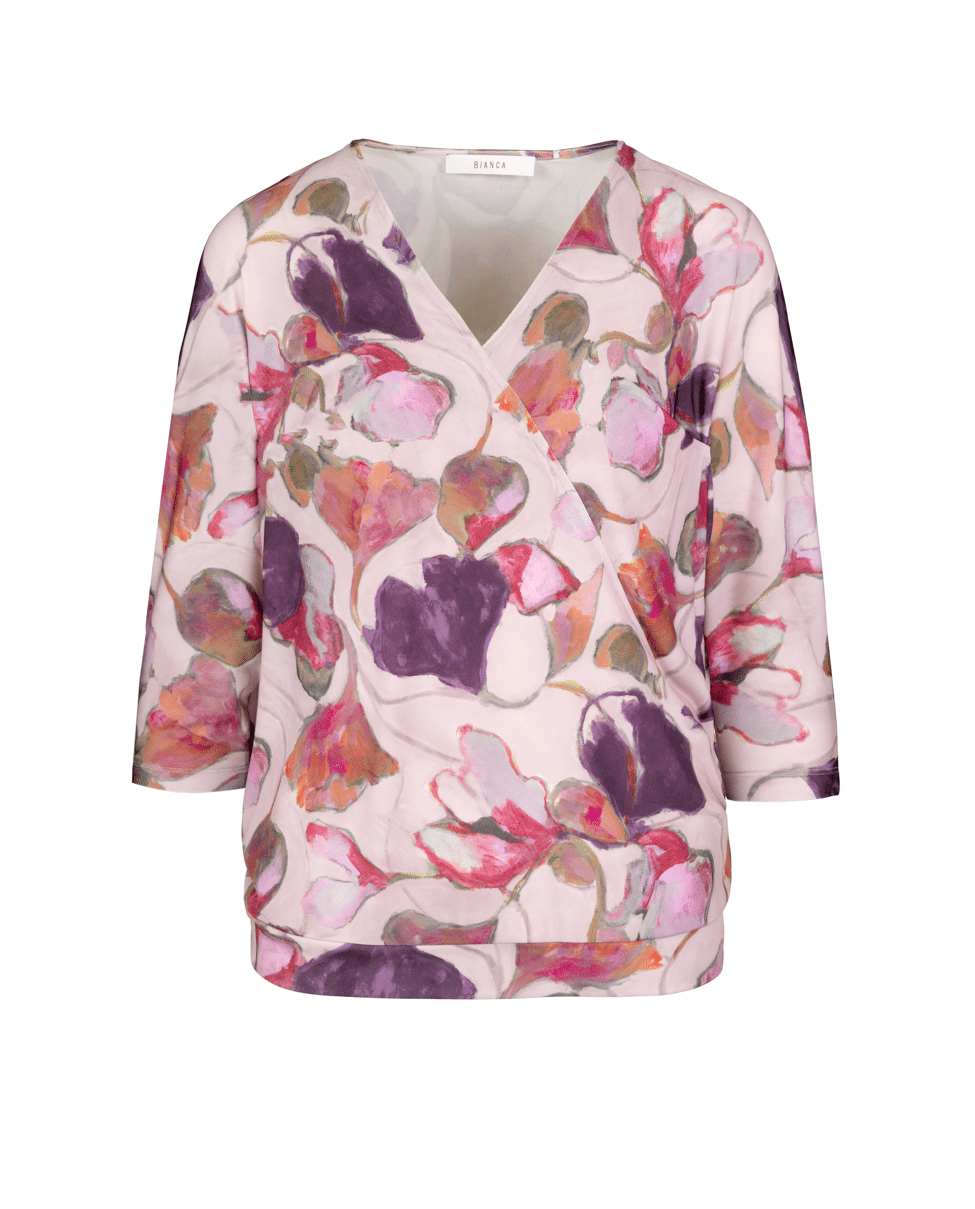 Een lichtgewicht shirt met kleurrijke bloemenprint en V-hals, perfect om je herfstlook op te frissen. Combineert moeiteloos met een jeans of rok.