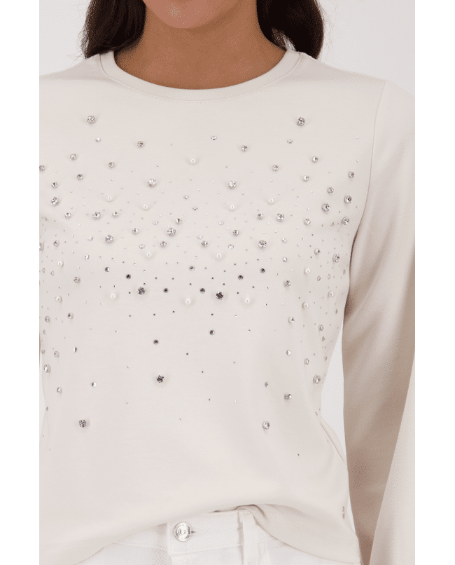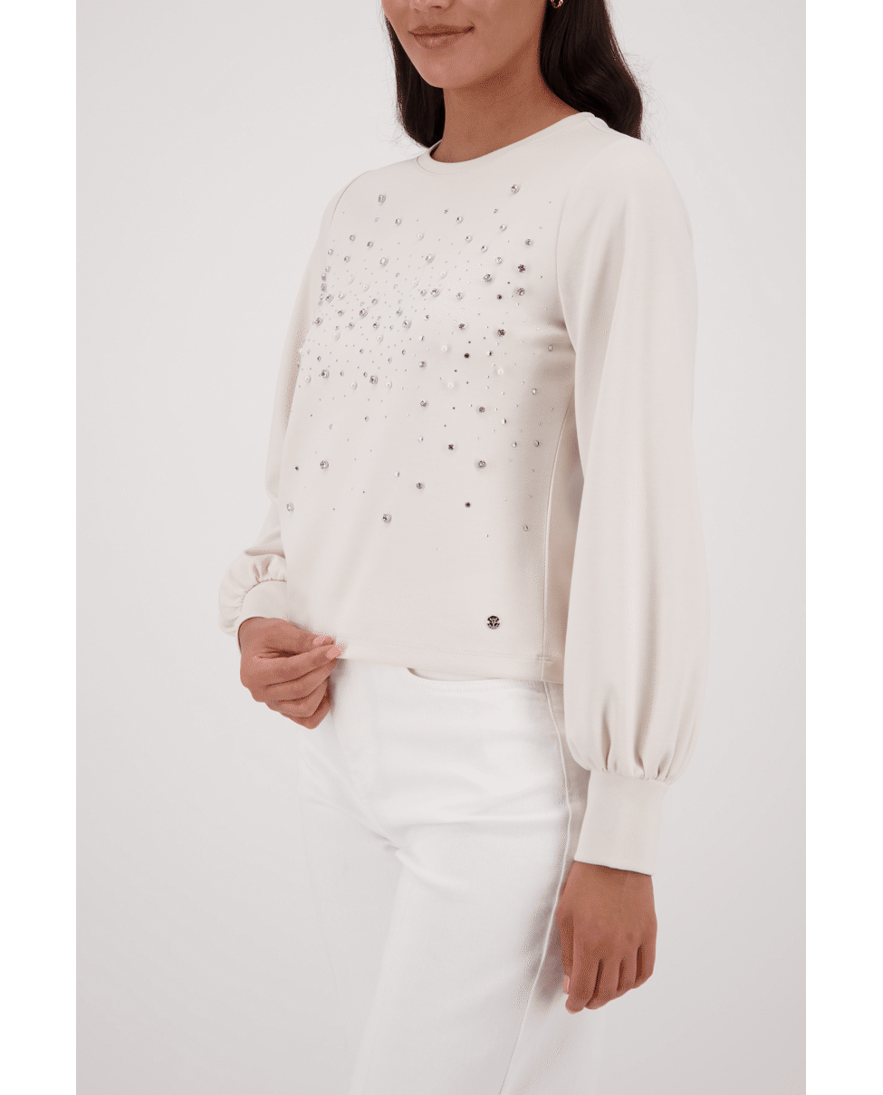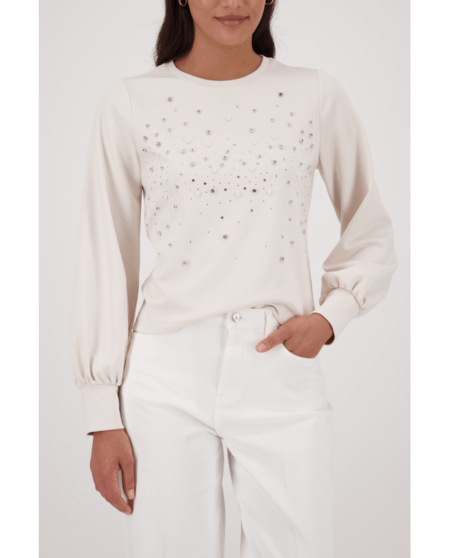 Dit sweatshirt van Monari is een verfijnde keuze voor casual momenten. De strass-steentjes geven een vrouwelijke twist aan een comfortabele basic.