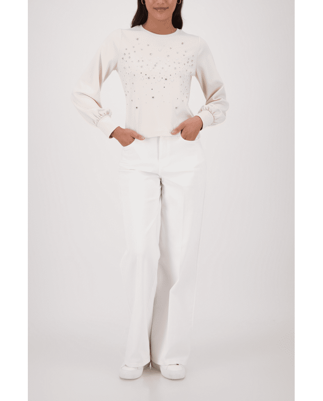 De fonkelende details op de borst maken het sweatshirt net even anders. Mooi in combinatie met een witte jeans of pantalon.