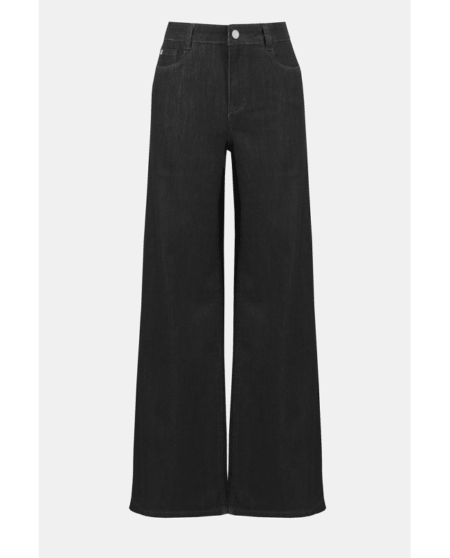 Deze wide leg jeans van Joseph Ribkoff heeft een moderne, wijde pasvorm in diepzwart denim. Een stoere maar elegante basis voor talloze outfits.