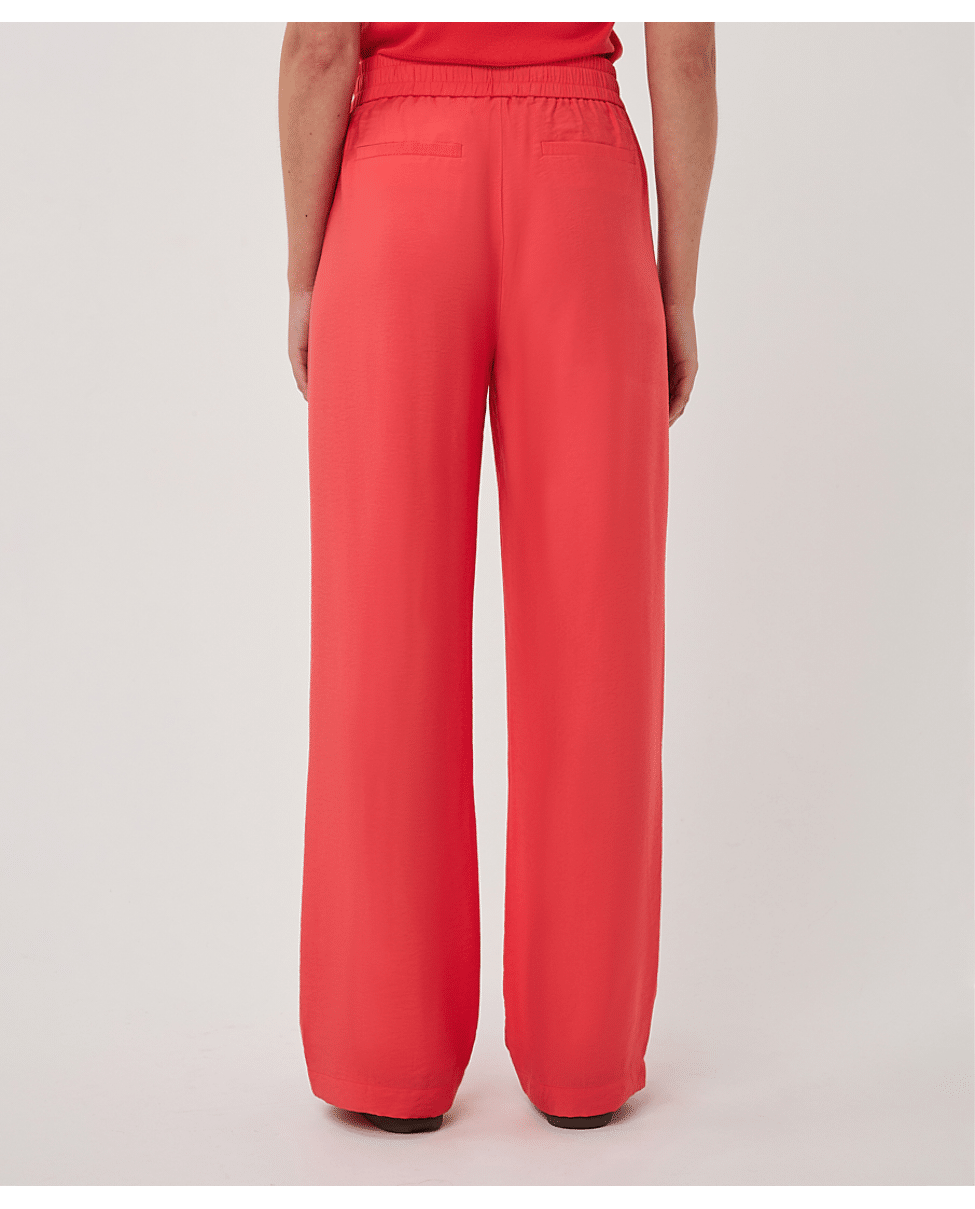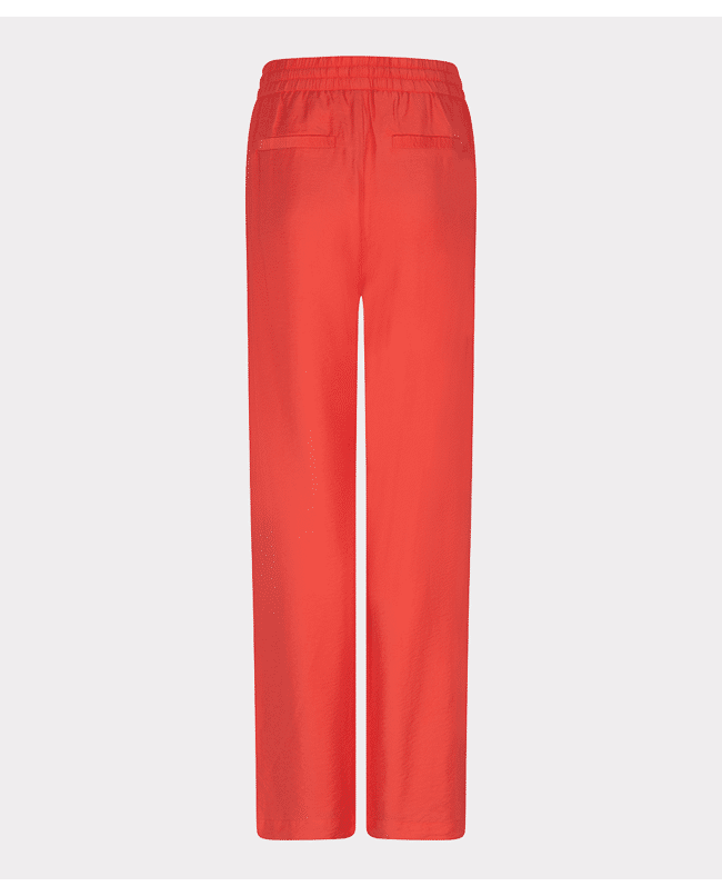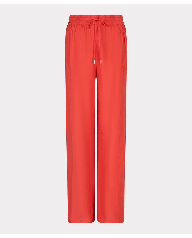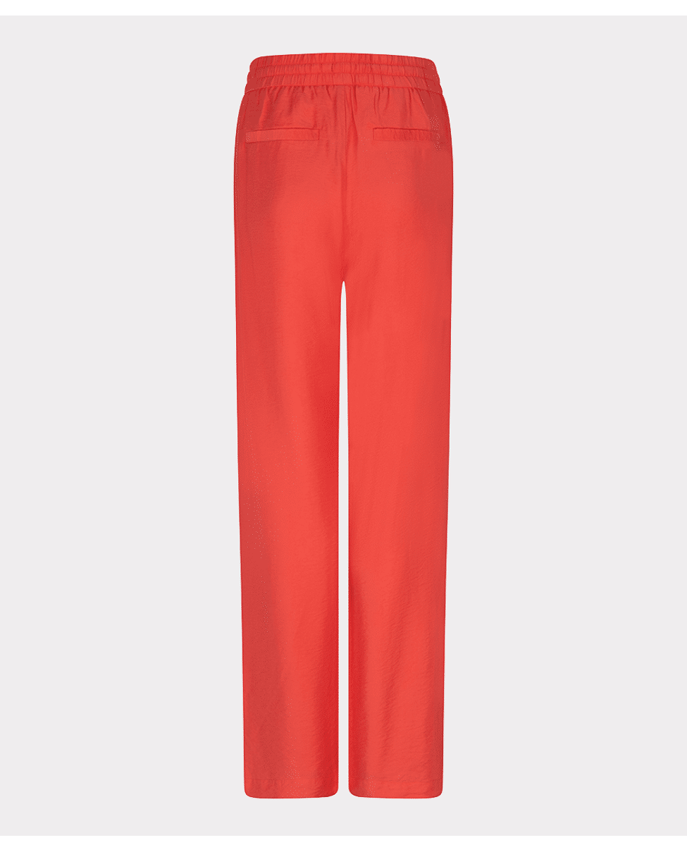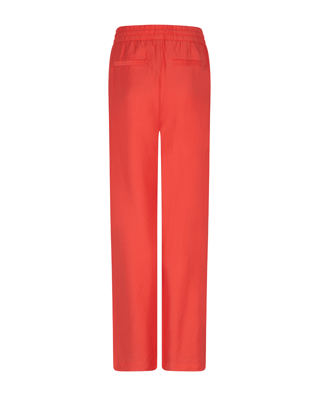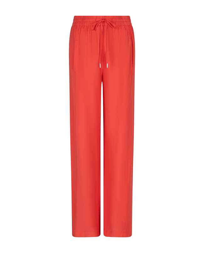 Luchtige wide leg broek in een slubstructuur met elastische tailleband. De soepele Tencel-blend en levendige kleur Chili Red maken deze broek een ideale keuze voor een stijlvolle, relaxte voorjaarslook.