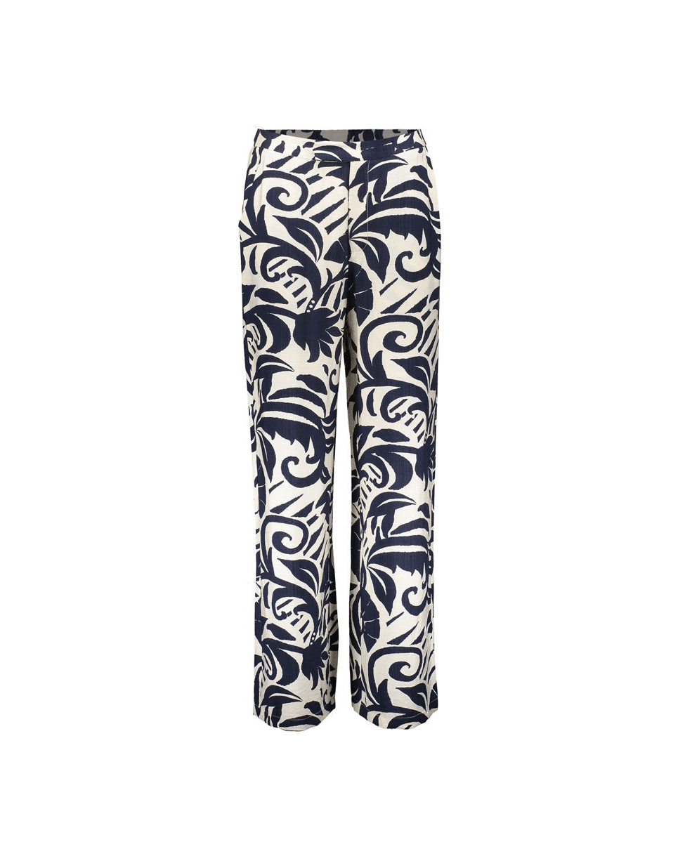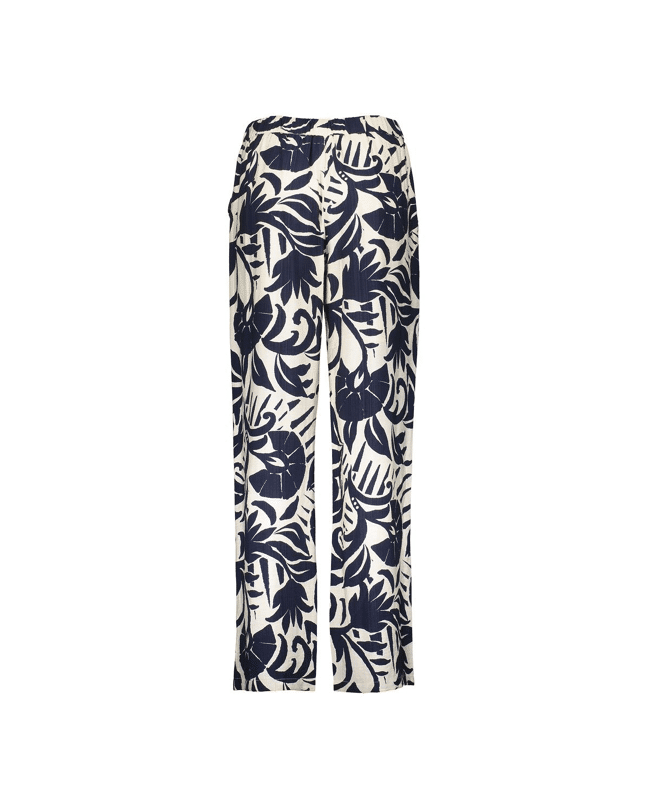 Deze soepelvallende broek met abstracte bloemenprint is ideaal voor een luchtige en stijlvolle zomerlook. Perfect voor vakantiedagen of een creatieve werkoutfit.