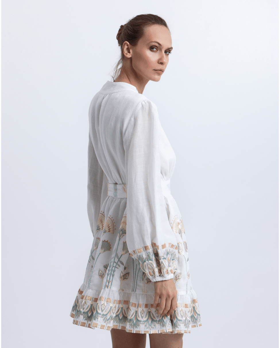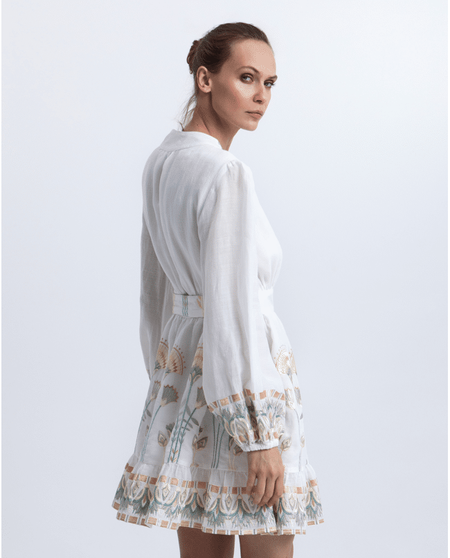Wikkeljurk van Greek Archaic Kori met geborduurde bloemen