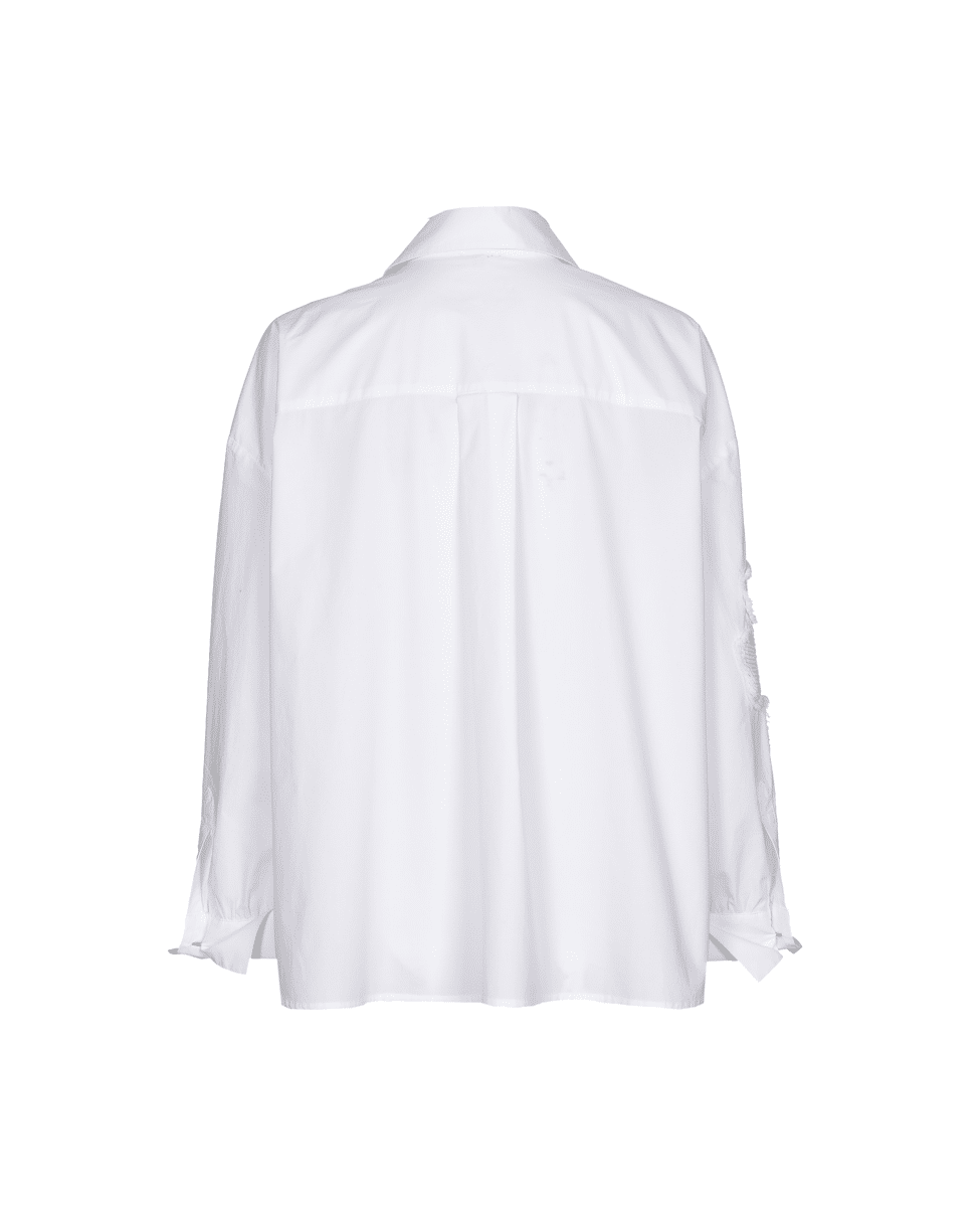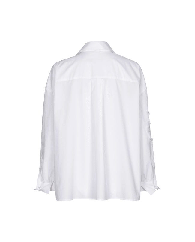 Deze witte blouse van Caroline Biss combineert een cleane look met opvallende ton-sur-ton bloemenapplicaties. Ideaal voor zowel een zakelijke als casual chique look.