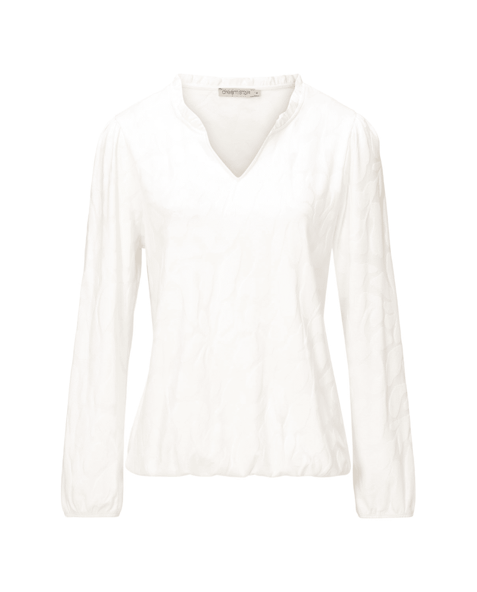 De subtiele structuur in de stof maakt deze top net even anders – een verfijnde basic voor elke dag.