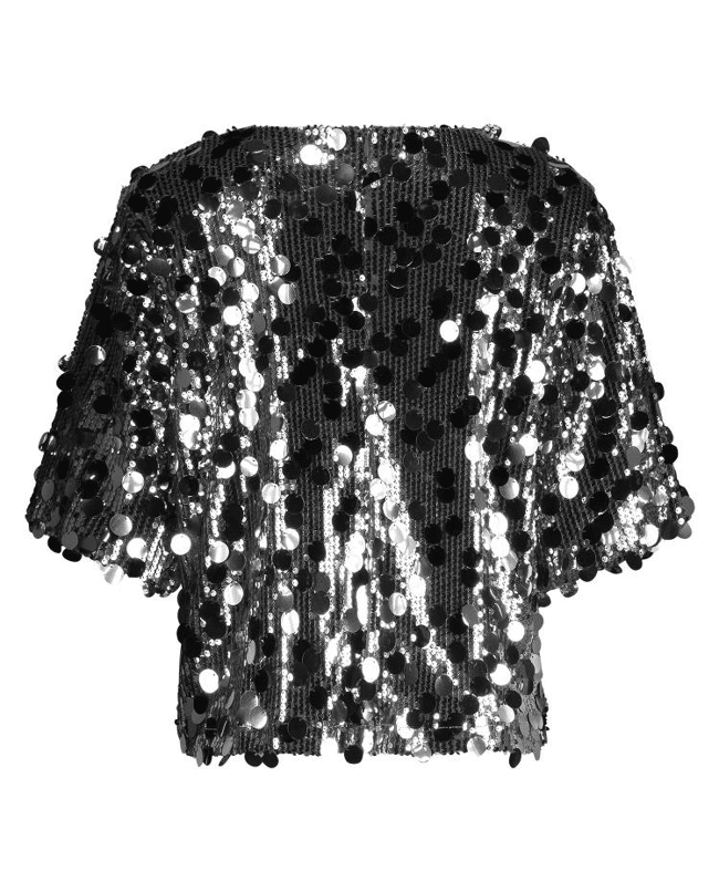 Deze top is perfect om je outfit een feestelijke twist te geven – combineer hem met een jeans voor casual chic of met een rok voor een avond vol glamour.