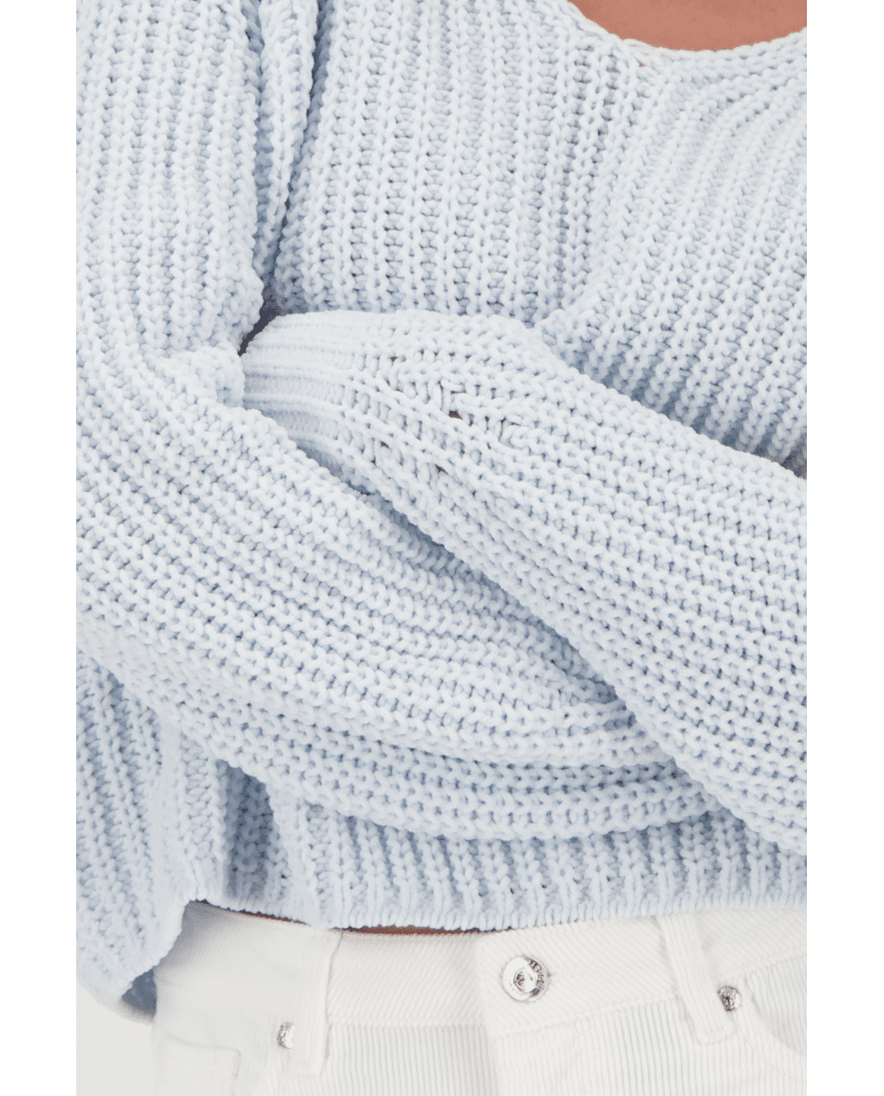 Chunky chenille-trui met zachte glans en V-hals.