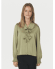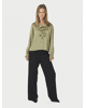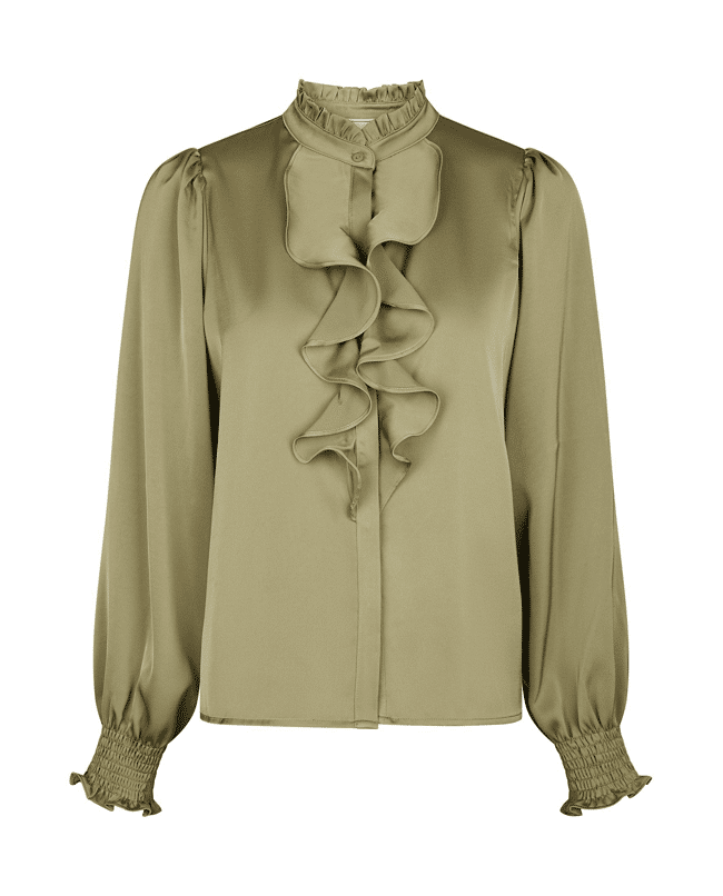 Deze satijnen blouse met ruches langs de sluiting brengt vrouwelijkheid en elegantie samen. De losvallende fit en zachte glans maken ‘m geschikt voor elke gelegenheid.
