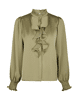 Zamola – Dames blouse van Neo Noir met geplooide ruches, satijnlook, knoopsluiting en lange mouwen met gesmokte manchetten
