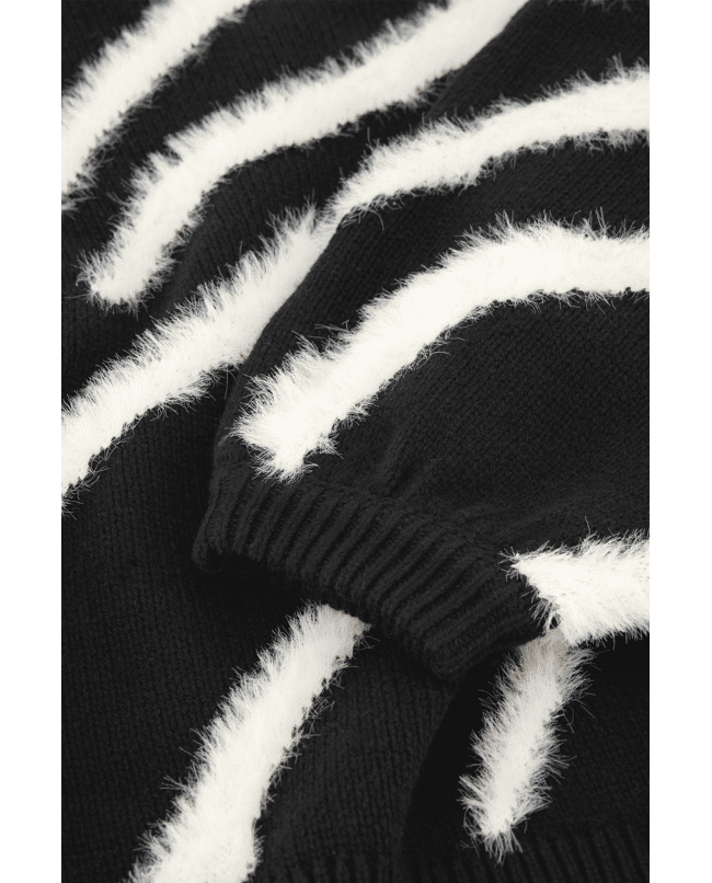 Een tijdloze zwarte pullover die elke garderobe compleet maakt. De Zebra pullover is stijlvol, veelzijdig en ideaal voor het najaar en de winter.