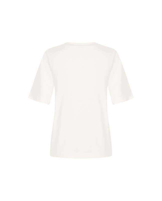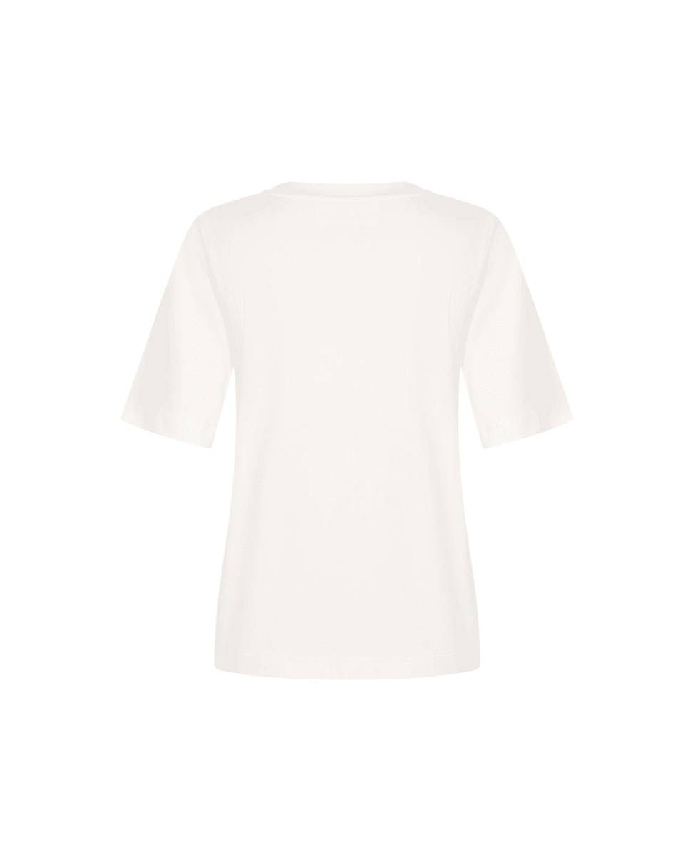 Basic T-shirt met tijdloze uitstraling in fris off-white. Een onmisbaar item dat je moeiteloos styled – van casual tot chic. Gemaakt voor dagelijks comfort, het hele jaar door.