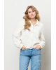 Een kort jasje met karakter. De structuurstof met ingeweven bloemenmotief en glanzend detail geeft deze jas een unieke, vrouwelijke uitstraling.