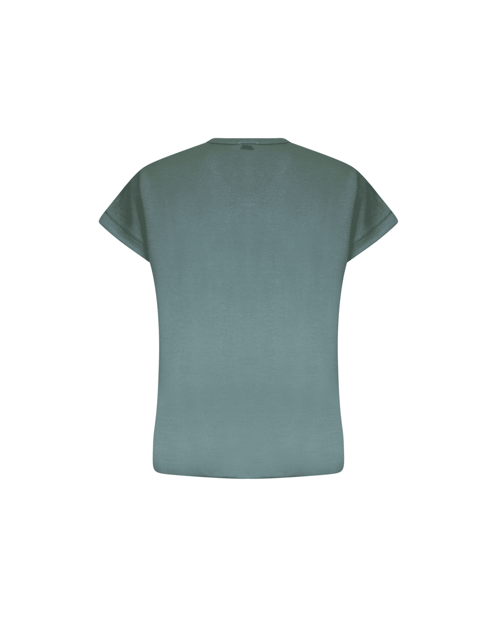 De combinatie van het geplaatste artwork en de zachte groentinten geeft dit T-shirt een natuurlijke, zomerse uitstraling. Het effen rugpand maakt het makkelijk te combineren.