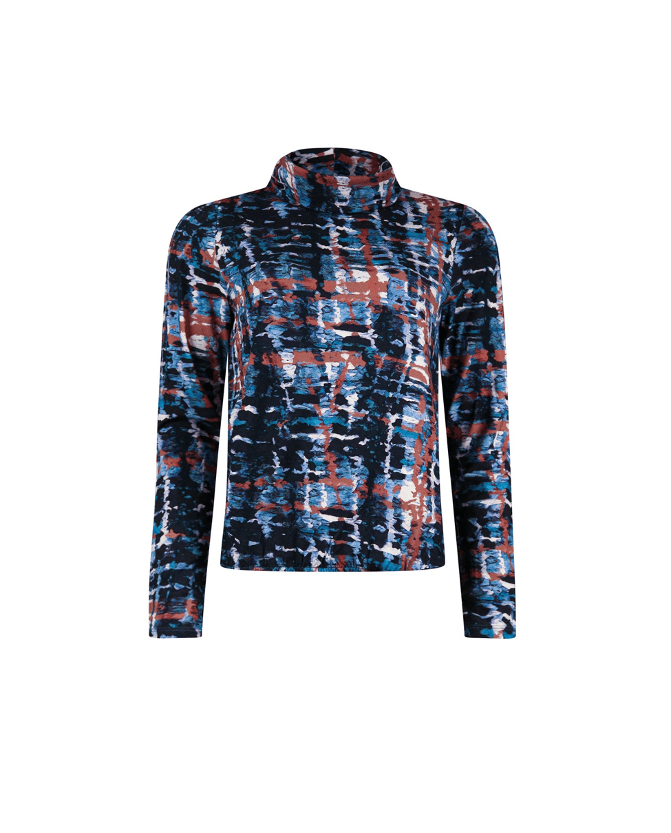 Een T-shirt met rollcollar, uitgevoerd in een soepele viscose-elasthan jersey. Met lange mouwen en een all-over print is dit item zowel comfortabel als stijlvol.